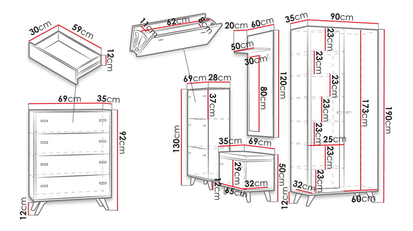 ZobrazitPředsíň je ideální volbou pro ty, kteří hledají pohodlí a styl. Hledáte praktický a mimořádný nábytek do předsíně? Pokud ano, máme pro vás velmi zajímavou nabídku! Tunbergia nábytek do předsíně – jeho styl odkazuje na módní skandinávský trend, díky rámu a vysokým nohám, které napodobují přírodní dřevo. Teplá barva dřeva dokonale zapadá do bílého těla nábytku. Sada obsahuje 5 prvků, které dokonale zaplňují prostor haly. Prvním prvkem je skříň se sklopnými dveřmi. Na přední straně šatníku je velké zrcadlo, které zvětšuje prostor. Uvnitř šatníku se ovšem nachází několik polic a bar pro ramínka. Další úložný prostor poskytuje komoda. Bude to skvělé místo pro uchovávání rukavic a klobouků. Kromě toho hala obsahuje dvě boty. Jeden vysoký, vybaven dvěma koši. Druhá kabinka na obuv slouží také jako sedátko. Posledním prvkem soupravy je panel se zrcadlem a háčky pro vrchní ošacení. Rozměry: - Tunbergia TN02 skříňka na boty: šířka: 69 cm, výška: 130 cm, hloubka: 28 cm, - komoda Tunbergia TN03 K4SZ: šířka: 69 cm, výška: 92 cm, hloubka: 35 cm, - Tunbergia TN04 skříňka: 50 cm, hloubka: 35 cm, - Tunbergia TN05 zrcadlová skříň: šířka: 90 cm, výška: 190 cm, hloubka: 35 cm, - Panel se závěsy Tunbergia TN06: šířka: 60 cm, výška: 120 cm, hloubka: 20 cm nohy a rukojeti, obyčejné panty, vodící kolejničky, hrana z PVC zrcadlo na přední straně Záruka: 24 měsíců