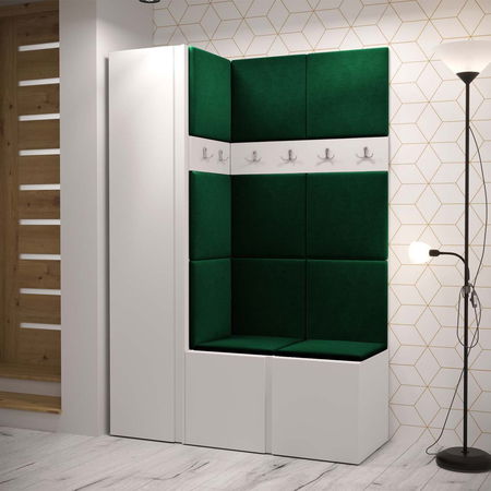 ZobrazitŠatní skříň Timothy je modelem pro speciální úkoly. Díky ní si zorganizujete byt a když půjdete do práce, školy či na nákupy, budete mít to nejpotřebnější vždy po ruce. Předsíňový set obsahuje: šatní skříň, botník, dva věšáky na šaty a čalouněný panel. Celá věc je velmi funkční, ale má také dekorativní hodnotu. Vzhledem k tomu, že se jedná o rohový model, bude perfektní do nerozvinutého koutu. Dostupné v mnoha barvách. Předsíňová skříňka Timothy se sedákem je moderním řešením do každé domácnosti. Díky ní si boty pohodlně obujete. Kabát či bunda budete mít vždy po ruce.