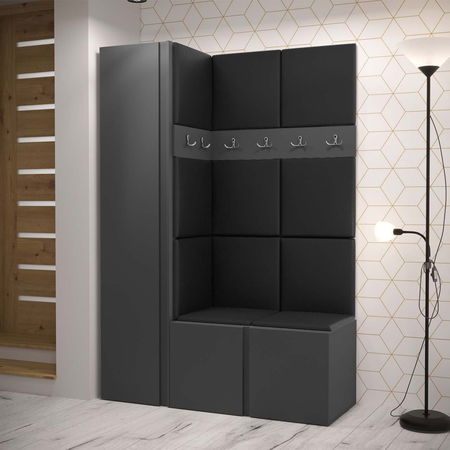 Šatník: šířka: 40 cm, výška: 186 cm, hloubka: 46 cm, Skříňka na boty: šířka: 84 cm, výška: 42 cm, hloubka: 46 cm, Věšák na šaty 84: šířka: 84 cm, výška: 16 cm , hloubka: 4,6 cm, Věšák na šaty 42: šířka: 42 cm, výška: 16 cm, hloubka: 4,6 cm, Čalouněný panel Pag 42x42x11: šířka: 42 cm, výška: 42 cm, hloubka: 4 cm