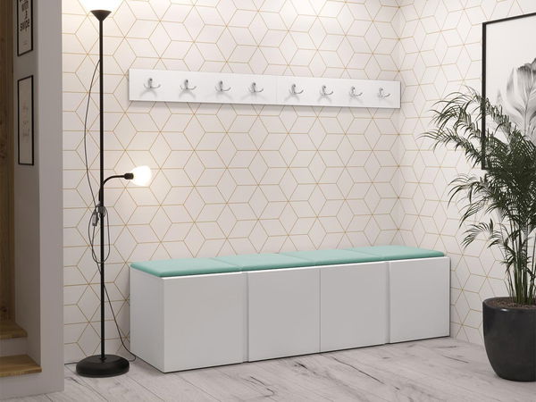ZobrazitPředstavíme vám kus nábytku, který vnese do vaší předsíně závan čerstvého vzduchu a poskytne obrovské množství místa pro oblečení a obuv pro vás i vaše hosty. Předsíň Timothy má až 8 háků na oblečení. Tento model vám nabízí také čtyři trojité police na všechny druhy bot a pantofle. Suma sumárum, šatní skříň je prostorná a umožní vám udržovat pořádek ve vašem pokoji. Moderní sestava se vyznačuje čalouněnými panely. Poskytnou pohodlné místo při zouvání nebo obouvání. Velké množství dostupných barev vás přinutí vybrat si něco, co se hodí do vaší předsíně. Čalouněná skříň je vyrobena z odolných materiálů, takže vám bude sloužit dlouhá léta.
