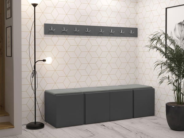 skříň na boty x 2: šířka: 84 cm, výška: 42 cm, hloubka: 46 cm, věšák na oblečení 84 x 2: šířka: 84 cm, výška: 16 cm, hloubka: 4,6 cm, čalouněný panel Pag 42x42 x4 : šířka: 42 cm, výška: 42 cm, hloubka: 4 cm