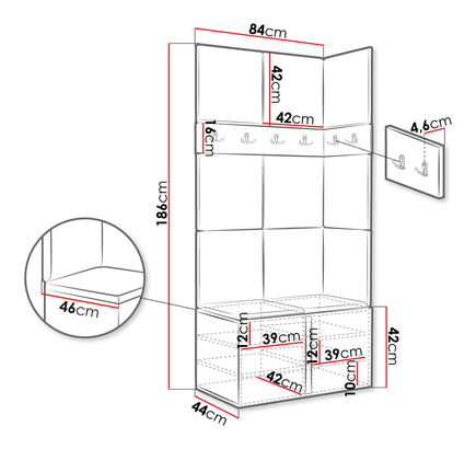 Skříňka na boty: šířka: 84 cm, výška: 42 cm, hloubka: 46 cm