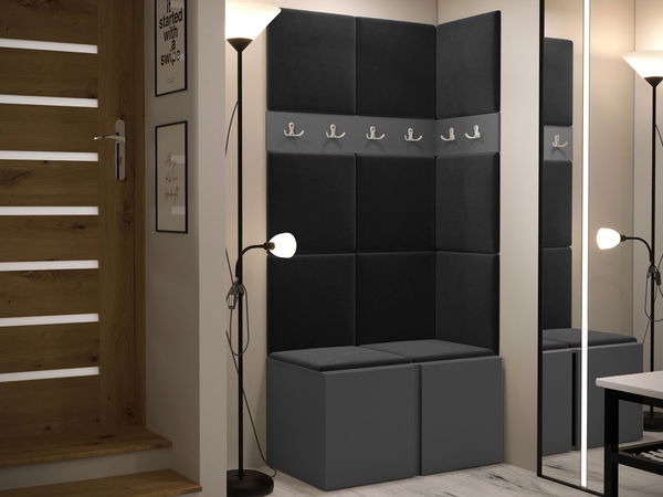 ZobrazitPředsíň Tovenaz I je model, který bude díky sadě čalouněných panelů vypadat skvěle v rohu místnosti. Panely o rozměrech 42 cm x 42 cm jsou vyrobeny z látky příjemné na dotek. Kromě estetické hodnoty budou panely pohodlnou oporou při obouvání bot. Součástí sestavy je také botník s četnými policemi. Na sedadle skříně jsou také čalouněné panely zvyšující její estetickou hodnotu a komfort. Posledním prvkem sestavy je panel se šesti dvojitými ramínky na šaty. Skříňky jsou univerzální, takže je lze namontovat dle přání - vpravo nebo vlevo.