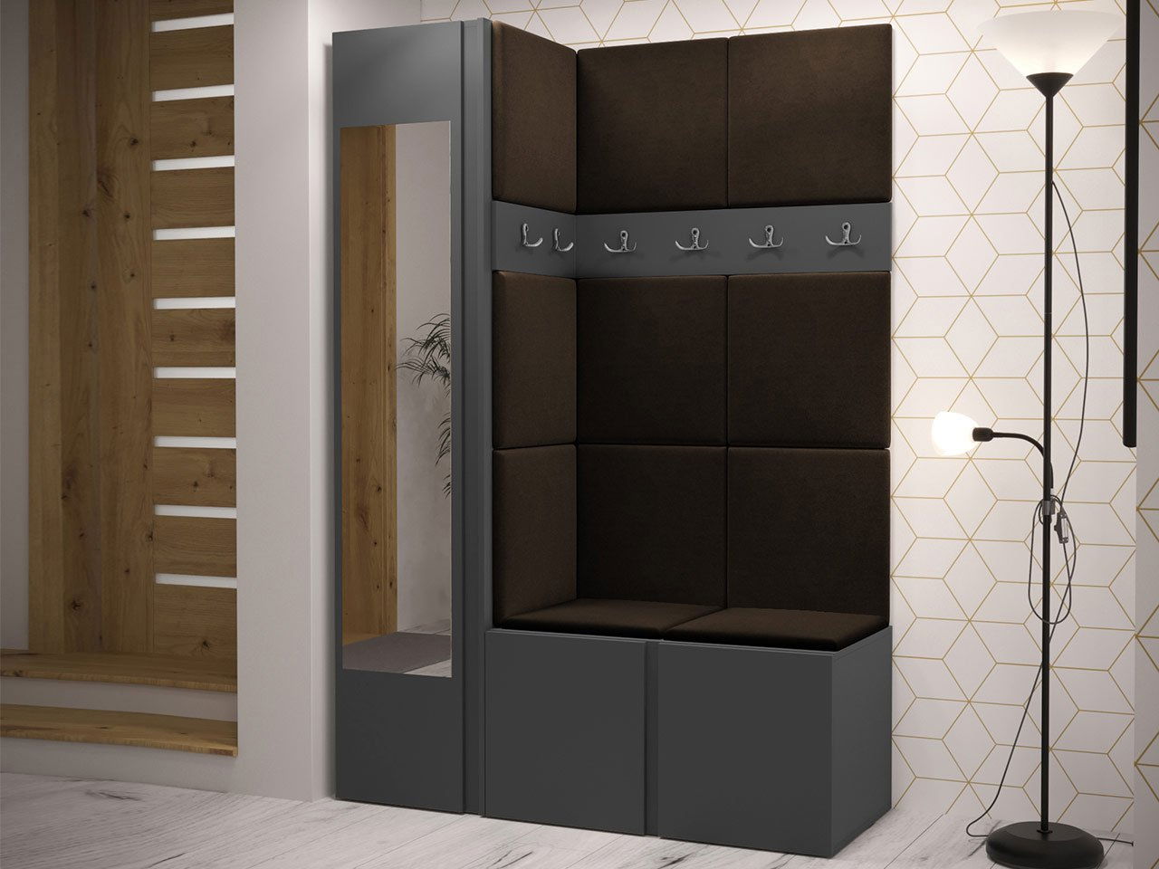 Předsíň Tovenaz X (grafit + hnědá) (se zrcadlem)