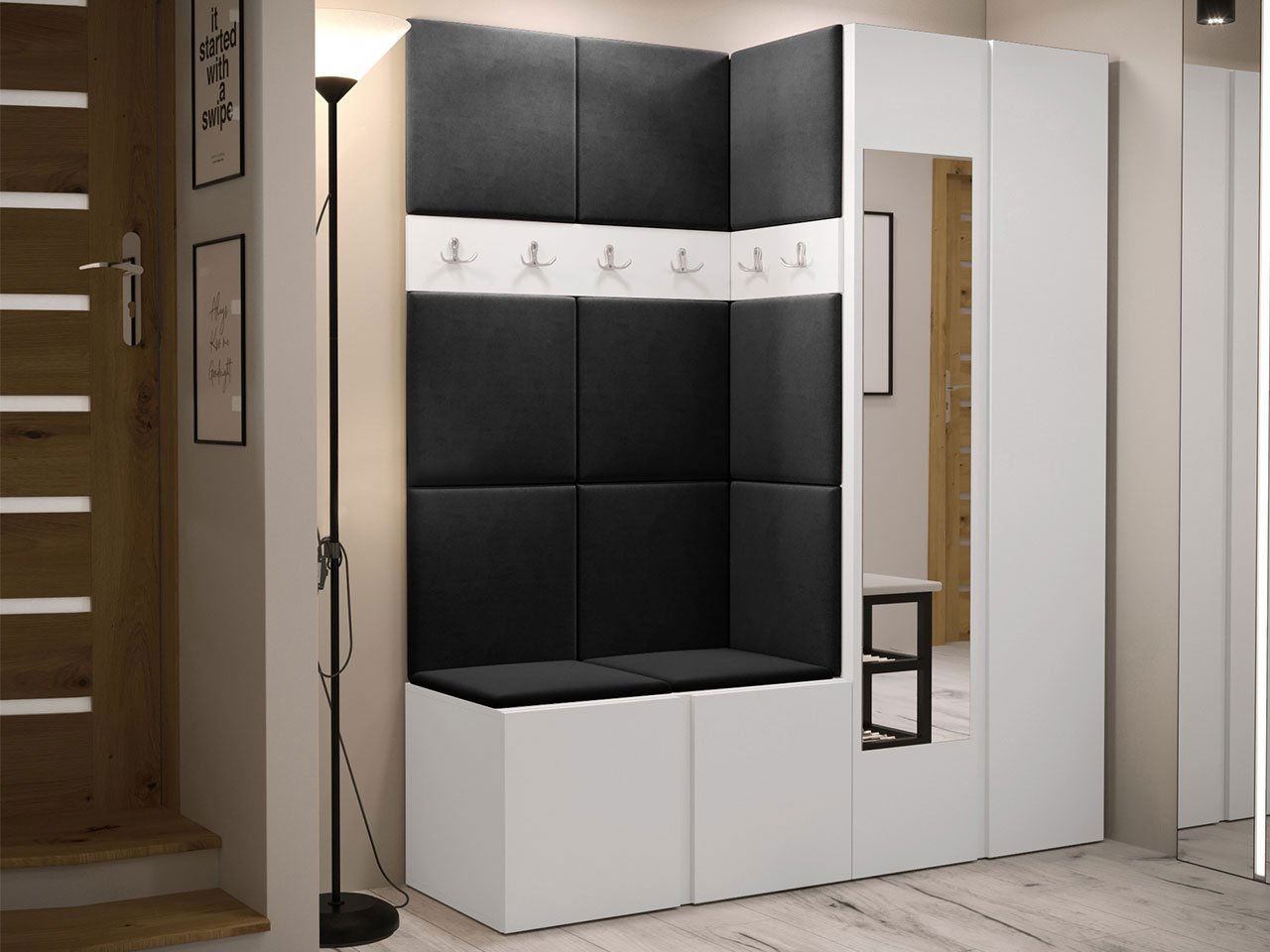 Předsíň Tovenaz XII (bílá + černá) (se zrcadlem)