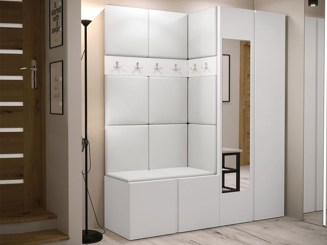 Předsíň Tovenaz XII se bude dobře vyjímat ve velké předsíni. Mezi ostatními modely se vyznačuje především větší šatní skříní se zrcadlem o těchto rozměrech: šířka: 74 cm, výška: 186 cm, hloubka: 46 cm. Tato varianta jistě potěší velké rodiny. Poskytne další prostor pro bundy, kabáty a jiné svrchní oděvy. Kromě uvedené šatní skříně souprava obsahuje: botník, dva věšáky na kabáty a čalouněné panely. Ty mají zvukově pohltivé vlastnosti a jsou vynikající povrchovou úpravou stěny (3D efekt). Barevná škála čalouněných panelů je mimořádně bohatá, což poskytuje široký prostor pro kreativní aranžování. Tato předsíň vnese pořádek a čistotu do každého interiéru. Zároveň poskytne závan svěžesti a moderního stylu.