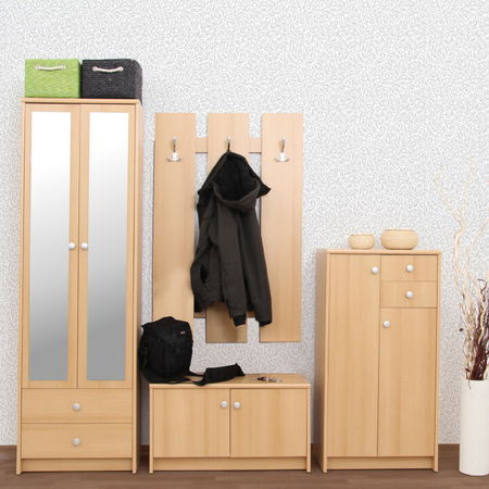 Praktická předsíň nabízí dostatek úložného a odkládacího prostoru. Svým designem dokonale zapadne do prostoru. Vyráběná je z foliované DTD v barevném provedení dřeva buk.