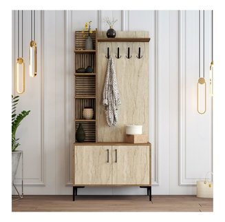 - Materiál a styl. Ať už preferujete provensálský, rustikální nebo moderní styl myslete také na odolnost a materiál předsíňového nábytku. Velmi často bývají předsíňové stěny z laminátu nebo dřevotřísky. Jsou cenově dostupné a můžete si vybrat z široké škály dekorů, např.: dub sonoma nebo oblíbené bílé provedení. Takto je umíte krásně sladit například s podlahou nebo stylovými a praktickými posuvnými dveřmi. Navíc je lze snadno omýt a jsou poměrně odolné. Dřevotříska se vyznačuje jemnou strukturou a velkým výběrem barev.
