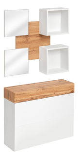 • Materiál a styl. Ať už preferujete provensálský, rustikální nebo moderní styl myslete také na odolnost a materiál předsíňového nábytku. Velmi často bývají předsíňové stěny z laminátu nebo dřevotřísky. Jsou cenově dostupné a můžete si vybrat z široké škály dekorů, např.: dub sonoma nebo oblíbené bílé provedení. Takto je umíte krásně sladit například s podlahou nebo stylovými a praktickými posuvnými dveřmi. Navíc je lze snadno omýt a jsou poměrně odolné. Dřevotříska se vyznačuje jemnou strukturou a velkým výběrem barev.
