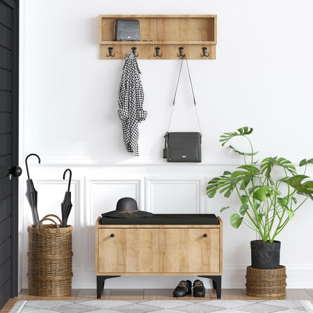 Předsíňová sestava - Lenny (Dub) je stylový a praktický kousek nábytku pro vaši předsíň. Díky svým standardním rozměrům (výška 49 cm, šířka 80 cm, hloubka 35 cm) se snadno přizpůsobí jakémukoli prostoru. Tato sestava je vyrobena z kvalitního dubového dřeva, což zaručuje její trvanlivost a odolnost. Součástí jsou praktické skříňky a police, které vám poskytnou dostatek úložného prostoru pro vaši obuv, oblečení a další věci. Předsíňová sestava - Lenny (Dub) je nejen esteticky příjemná, ale také funkční, díky čemuž vám pomůže udržet váš vstupní prostor uklizený a organizovaný.