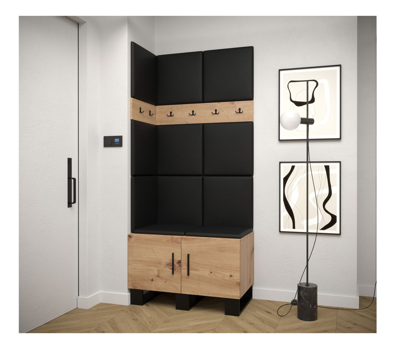Předsíňová sestava Amanda 11 (dub artisan + černá ekokůže)