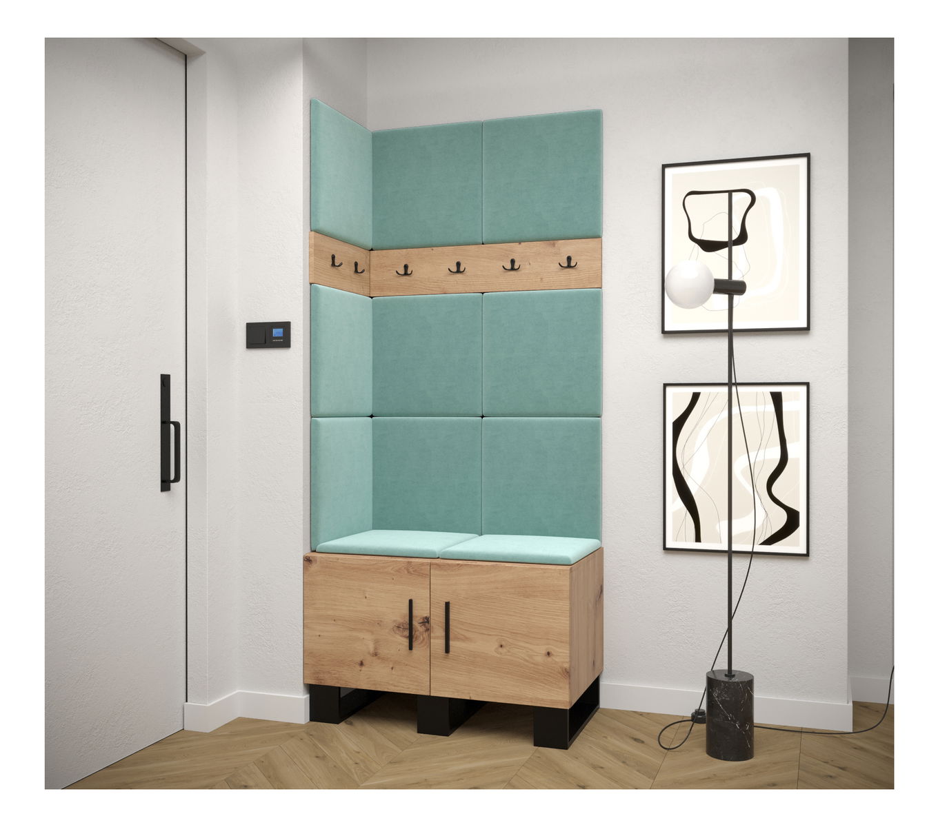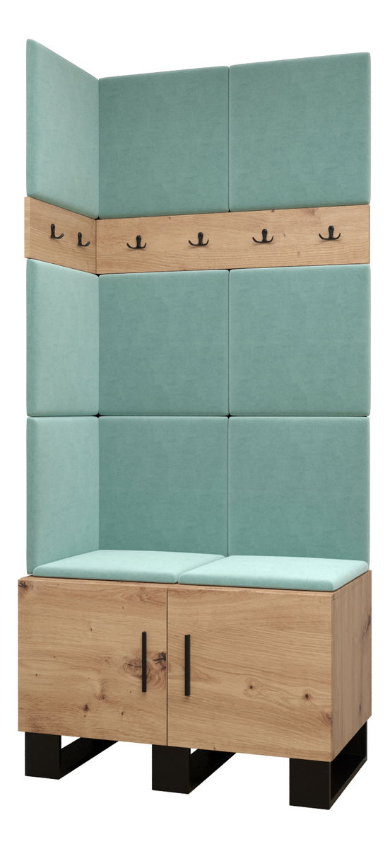 Designová předsíňová sestava Amanda se stane krásným a zejména praktickým doplňkem Vašeho interiéru. Skříňka na boty poslouží pro praktické uložení Vaší obuvi a díky kombinaci jednoho dvouvěšákového a jednoho čtyřvěšákového panelu budete mít také dostatek místa na zavěšení Vašich větrovek či kabátů. Moderní akcent síně je zvýrazněn i čalouněnými panely, které předsíni dodávají nejen přitažlivý styl a eleganci, ale také poskytují i ochranu Vašeho nábytku před poškozením a výborné akustické vlastnosti.