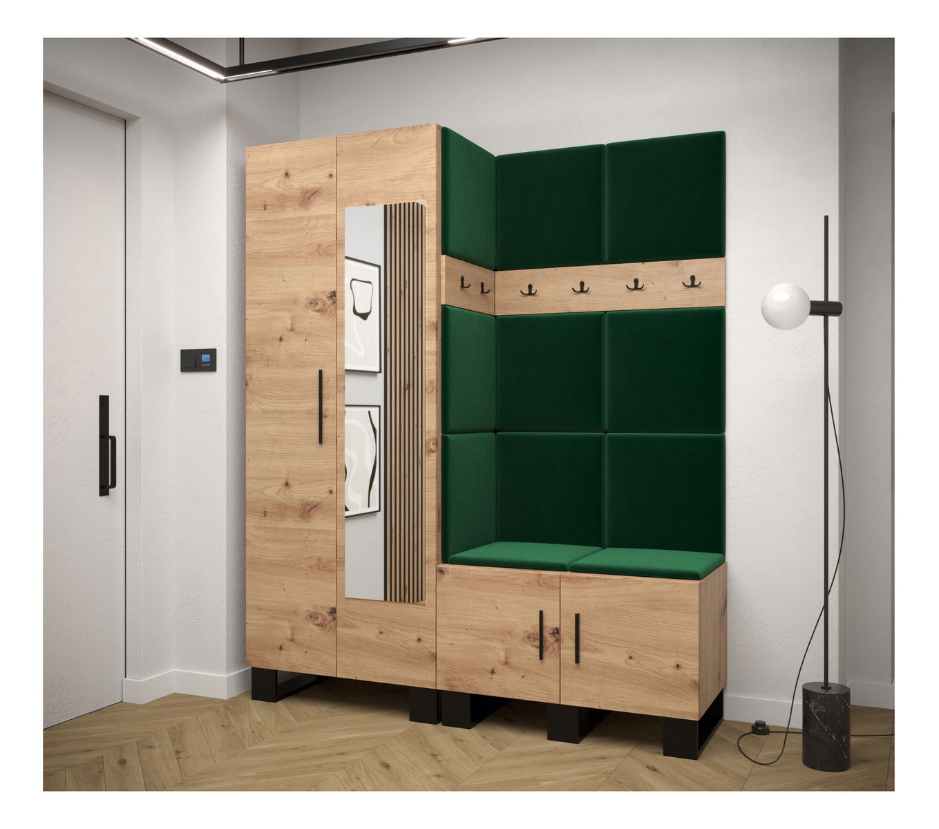 Předsíňová sestava Amanda 14 (dub artisan + zelená)