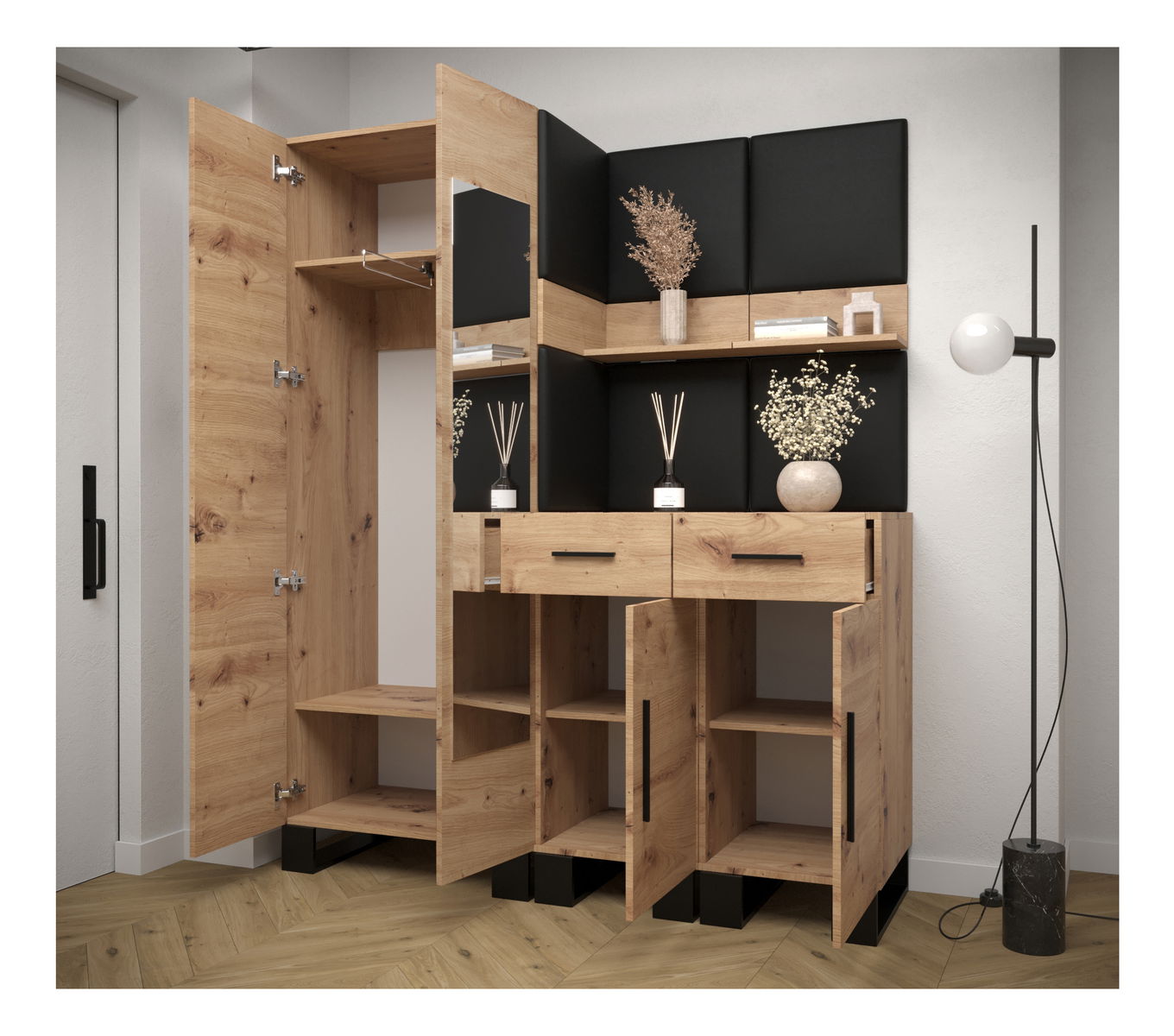 Předsíňová sestava Amanda 15 (dub artisan + černá)