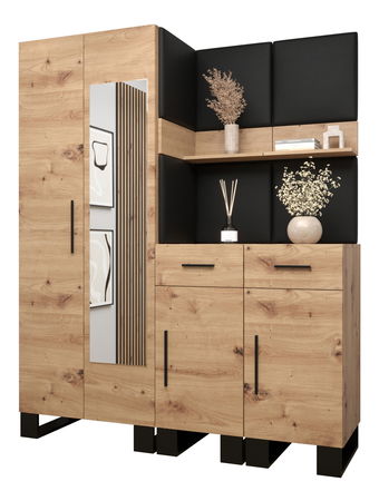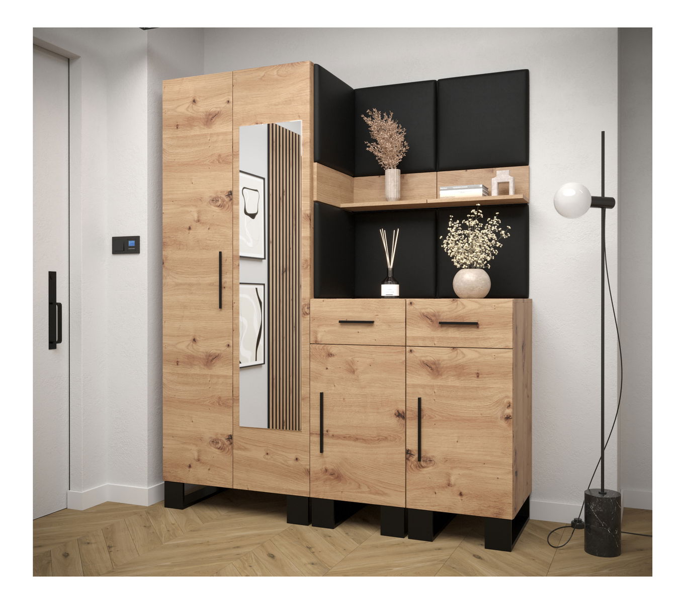 - Předsíňová sestava Amanda 15 (dub artisan + černá ekokůže)