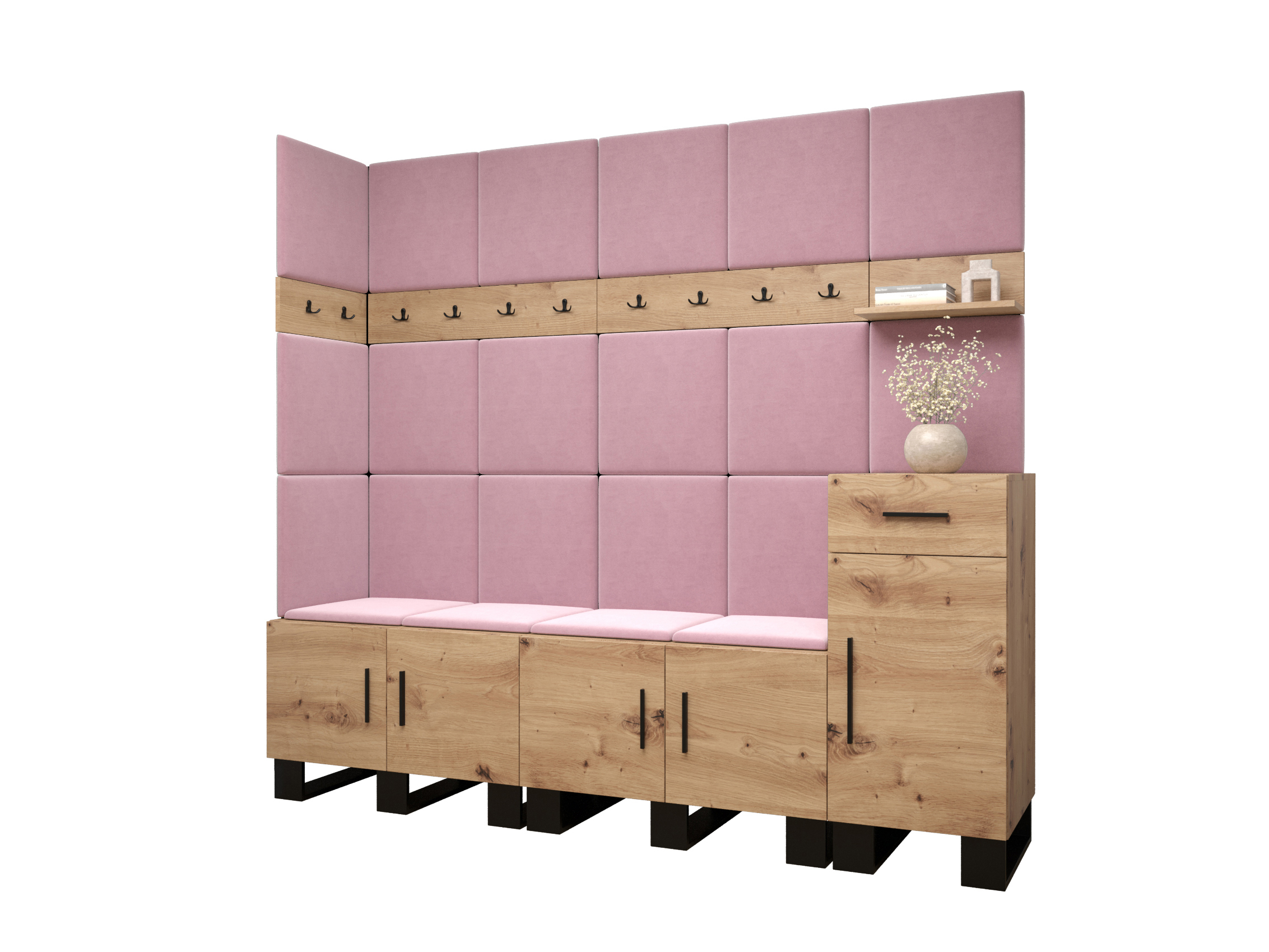 Předsíňová sestava Amanda 17 (dub artisan + růžová)