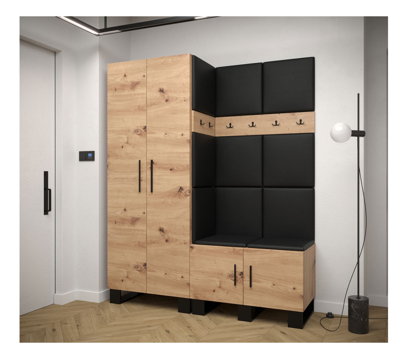 Předsíňová sestava Amanda 2 (dub artisan + černá ekokůže)