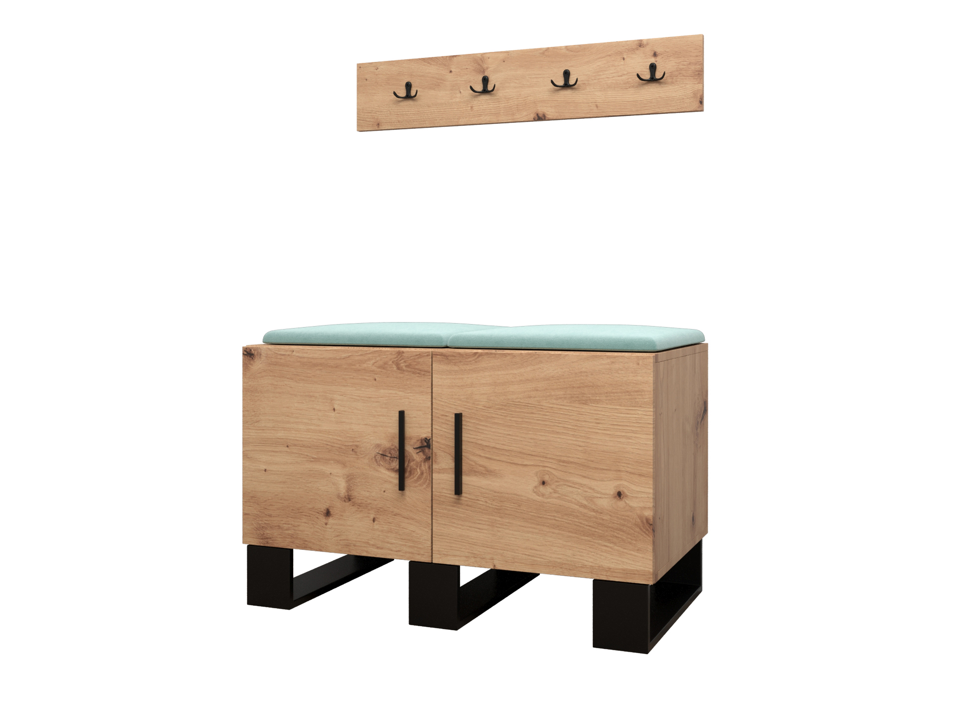 Designová předsíňová sestava Amanda se stane krásným a zejména praktickým doplňkem Vašeho interiéru. Kombinace skříňky na boty spolu s věšákovým panelem Vám poskytne úložný prostor pro Vaši obuv a praktické místo pro zavěšení Vaší větrovky či kabátu. Moderní akcent síně je zvýrazněn i čalouněnými panely, které předsíni dodávají nejen přitažlivý styl a eleganci, ale také poskytují i ochranu Vašeho nábytku před poškozením a výborné akustické vlastnosti.