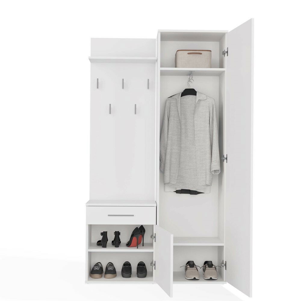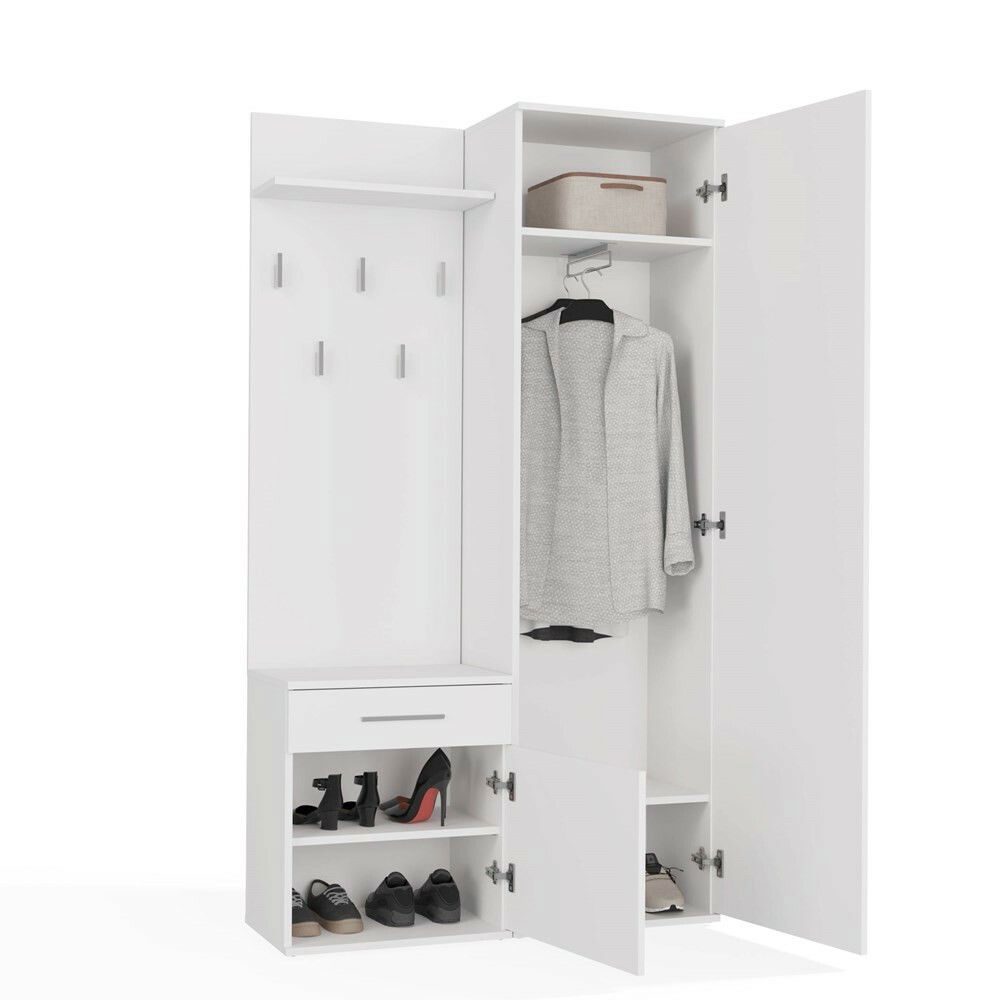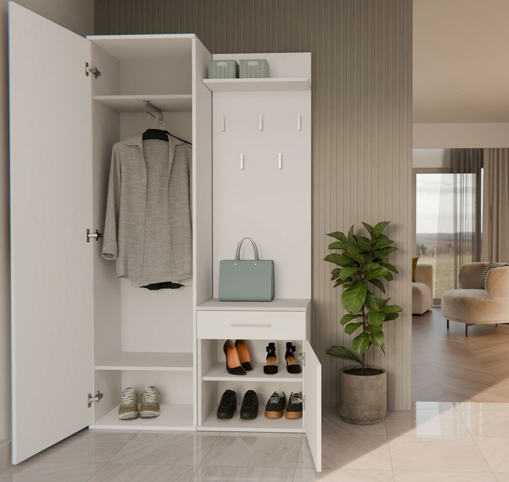 ZobrazitPředsíňová sestava Dialogos 1 je ideálním řešením pro ty, kteří hledají spojení elegance a funkčnosti ve svém interiéru. S moderním designem a bílou barvou, tato sestava nabízí prostornou šatnu s praktickým zrcadlem, šuplíkem a menší skříní, která zajišťuje dostatek úložného prostoru. Díky možnosti montáže na zeď je zaručena stabilita a úspora místa, což oceníte zejména v menších předsíních. Sestava je vyrobena z kvalitní laminované dřevotřísky, což zaručuje její dlouhou životnost a snadnou údržbu.