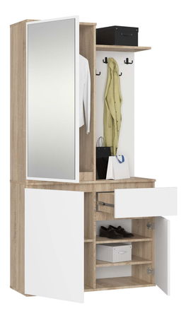 Předsíňová sestava Enteruno (dub sonoma + bílá) (se zrcadlem)