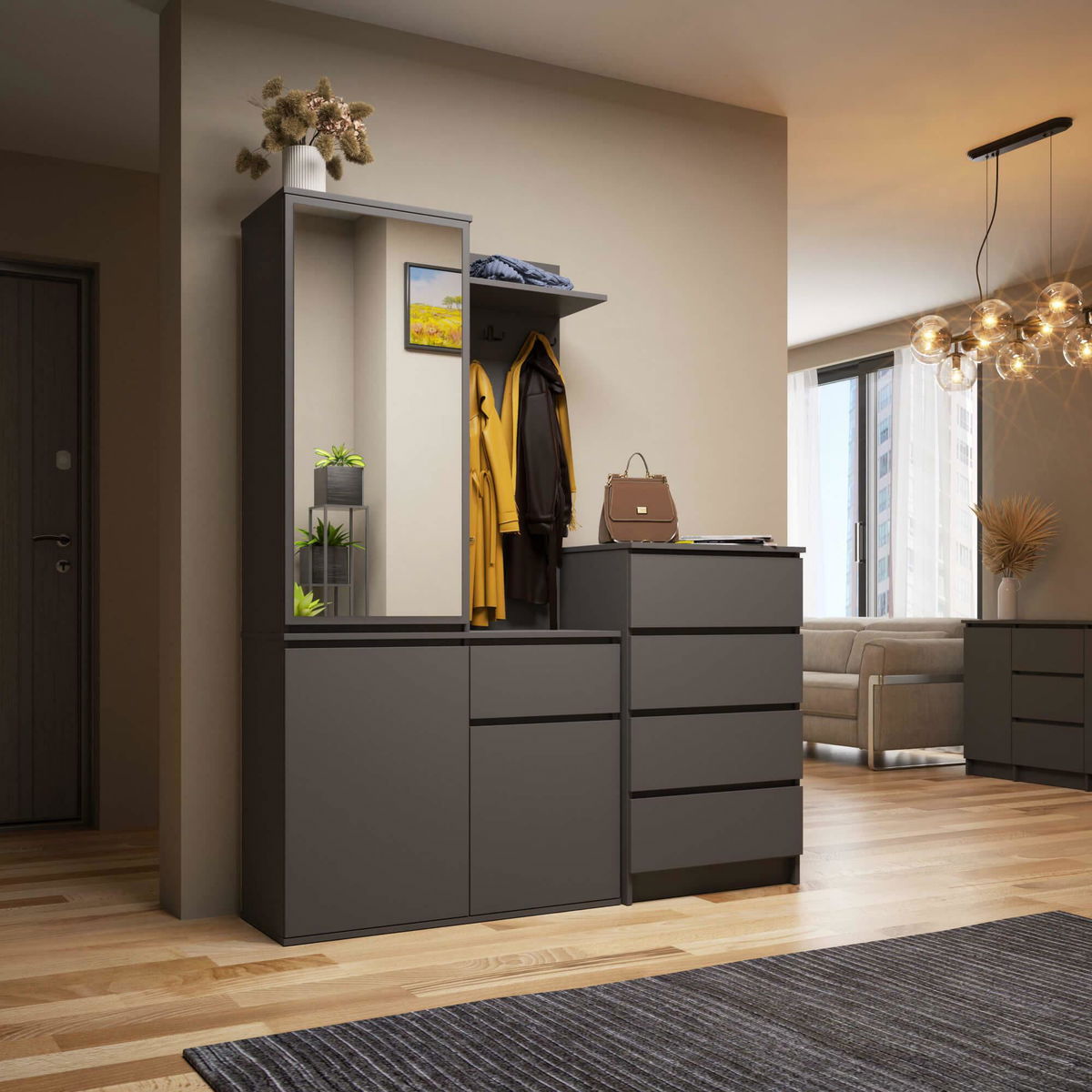 Předsíňová sestava Enteruno (šedý grafit) (se zrcadlem)