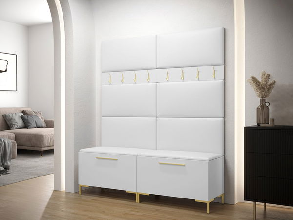 Skříň na boty Frunofta x2: šířka: 84 cm, výška: 52 cm, hloubka: 46 cm, Věšák na šaty 84 Frunofta x2: šířka: 84 cm, výška: 16 cm, Čalouněný panel Pag 84x42: x8 šířka: 84 cm, výška : 42 cm, hloubka: 4 cm