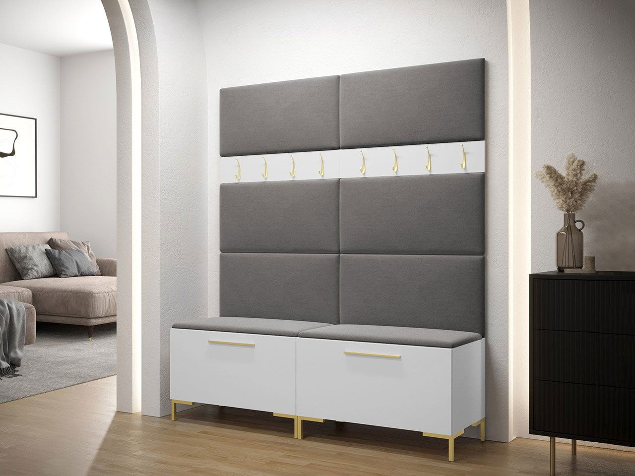 Skříň na boty Frunofta x2: šířka: 84 cm, výška: 52 cm, hloubka: 46 cm, Věšák na šaty 84 Frunofta x2: šířka: 84 cm, výška: 16 cm, Čalouněný panel Pag 84x42: x8 šířka: 84 cm, výška : 42 cm, hloubka: 4 cm