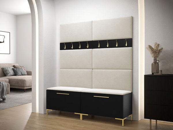 Skříň na boty Frunofta x2: šířka: 84 cm, výška: 52 cm, hloubka: 46 cm, Věšák na šaty 84 Frunofta x2: šířka: 84 cm, výška: 16 cm, Čalouněný panel Pag 84x42: x8 šířka: 84 cm, výška : 42 cm, hloubka: 4 cm