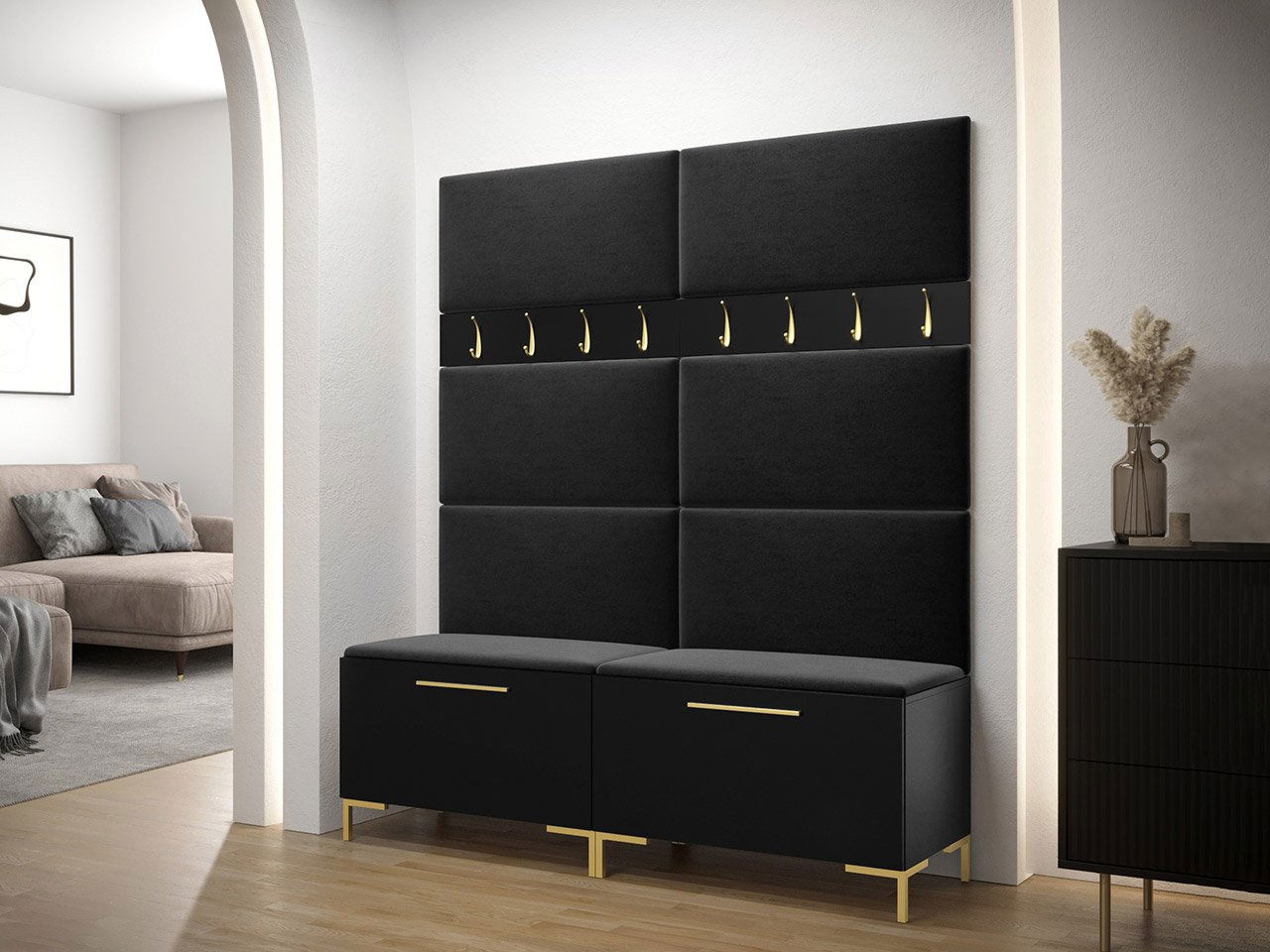 Skříň na boty Frunofta x2: šířka: 84 cm, výška: 52 cm, hloubka: 46 cm, Věšák na šaty 84 Frunofta x2: šířka: 84 cm, výška: 16 cm, Čalouněný panel Pag 84x42: x8 šířka: 84 cm, výška : 42 cm, hloubka: 4 cm