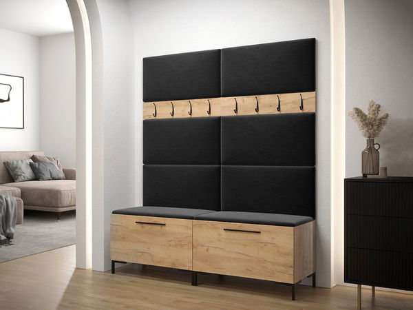 Skříň na boty Frunofta x2: šířka: 84 cm, výška: 52 cm, hloubka: 46 cm, Věšák na šaty 84 Frunofta x2: šířka: 84 cm, výška: 16 cm, Čalouněný panel Pag 84x42: x8 šířka: 84 cm, výška : 42 cm, hloubka: 4 cm