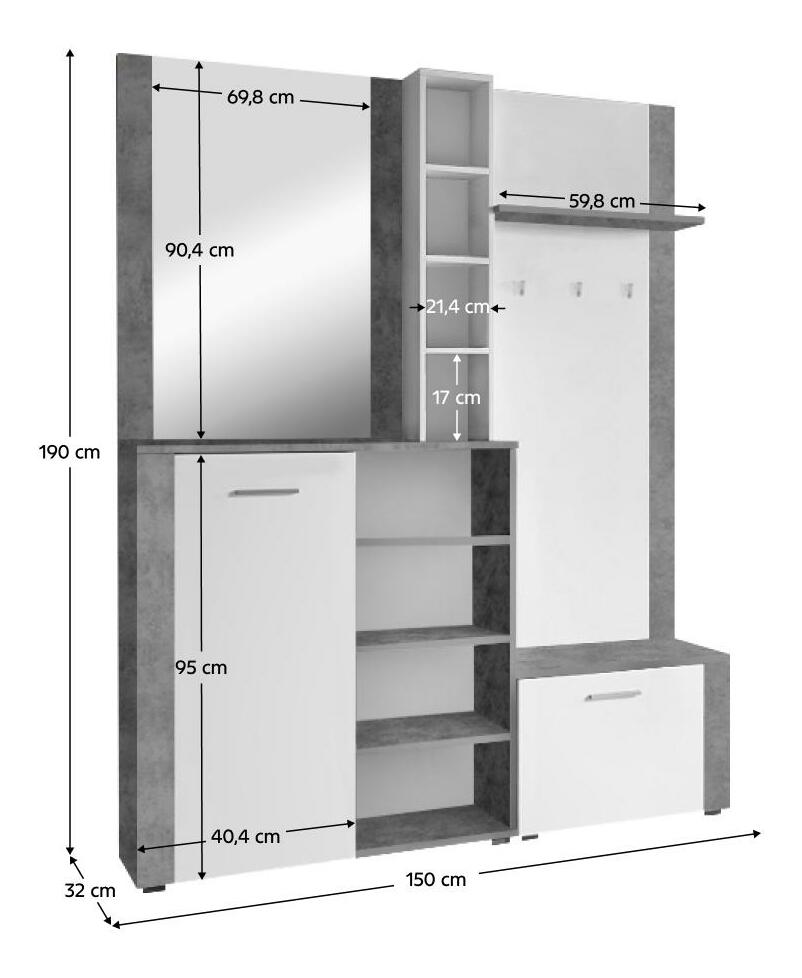 Předsíňová sestava Fulgores (bílá + beton)