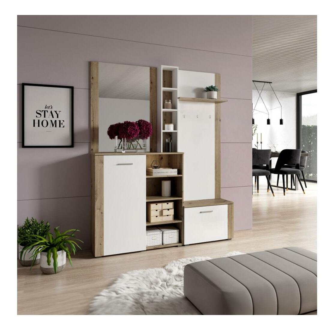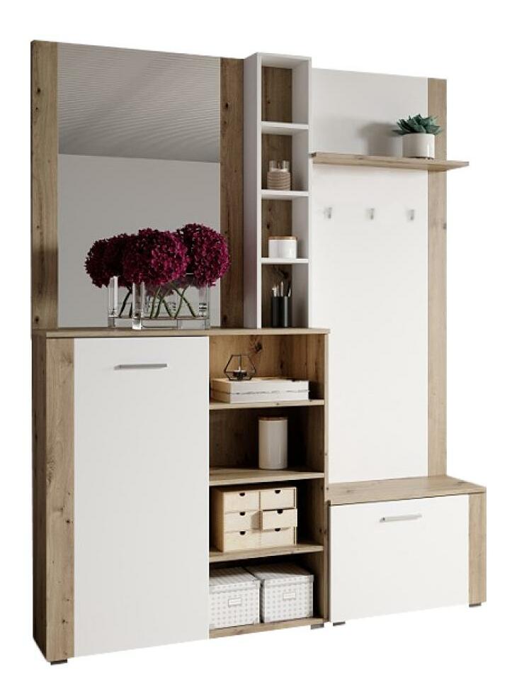 Předsíňová sestava Fulgores (dub artisan + bílá) (se zrcadlem)