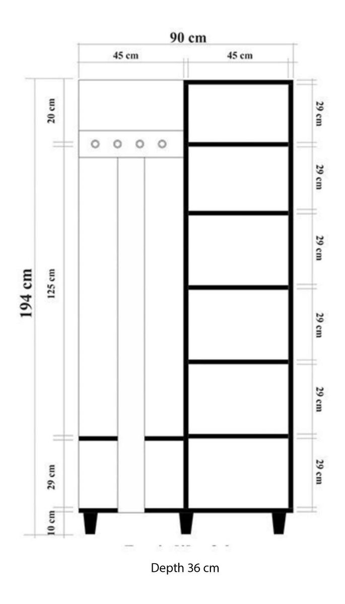 šířka: 90 cm výška: 194 cm hloubka: 36 cm