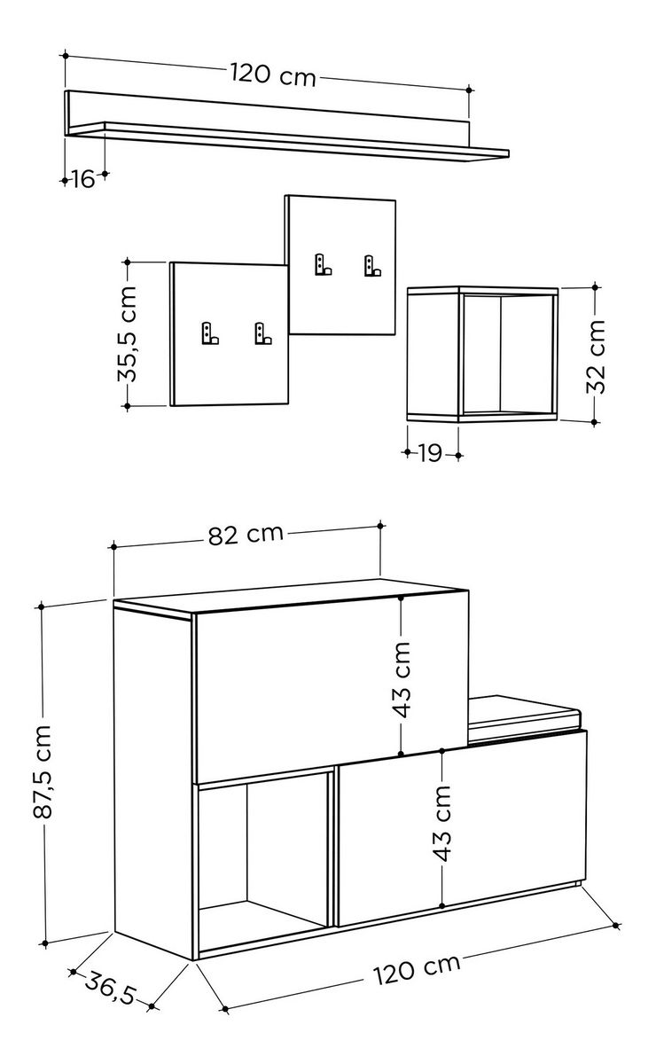 předsíňová sestava rozměry: šířka: 120 cm výška: 76 cm hloubka: 17 cm