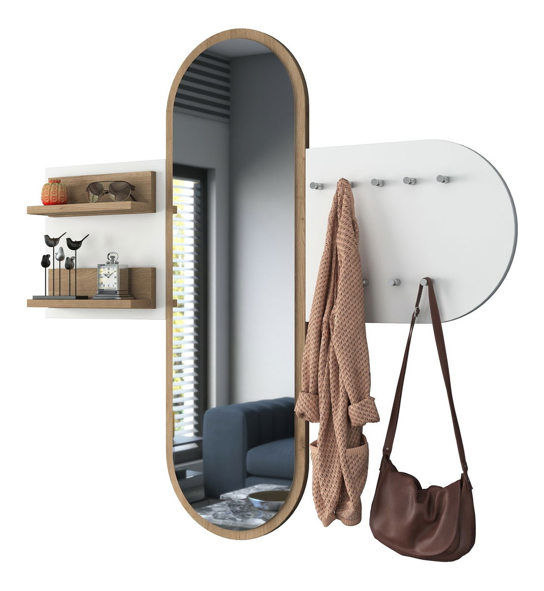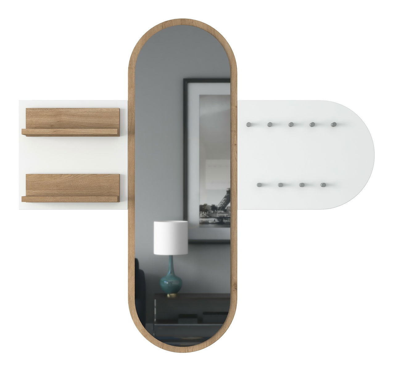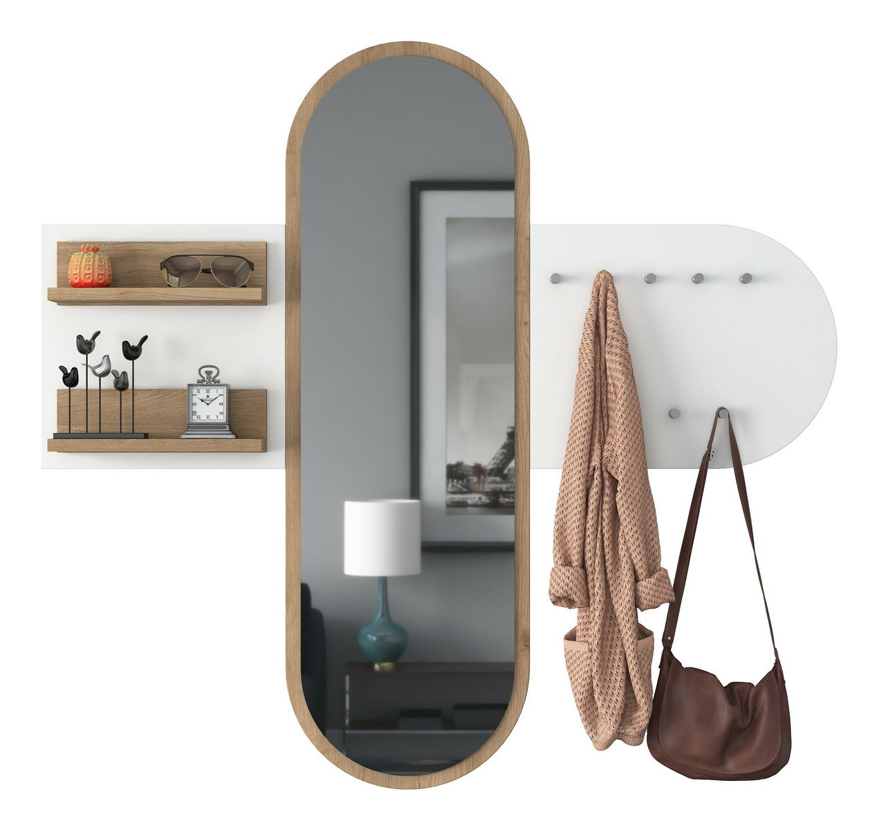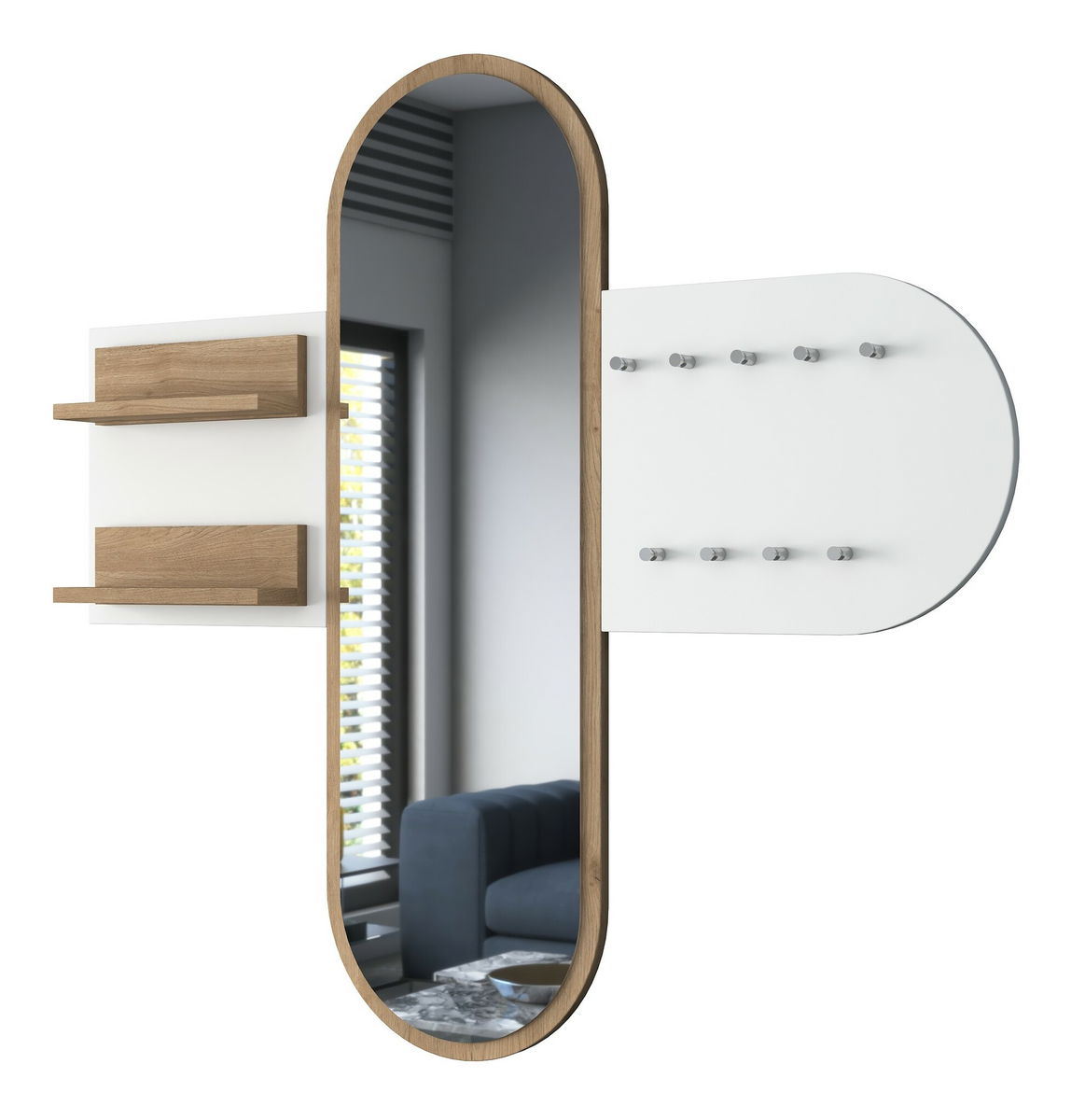 Předsíňová sestava Pixie 3 (Bílá + Ořech) (se zrcadlem)