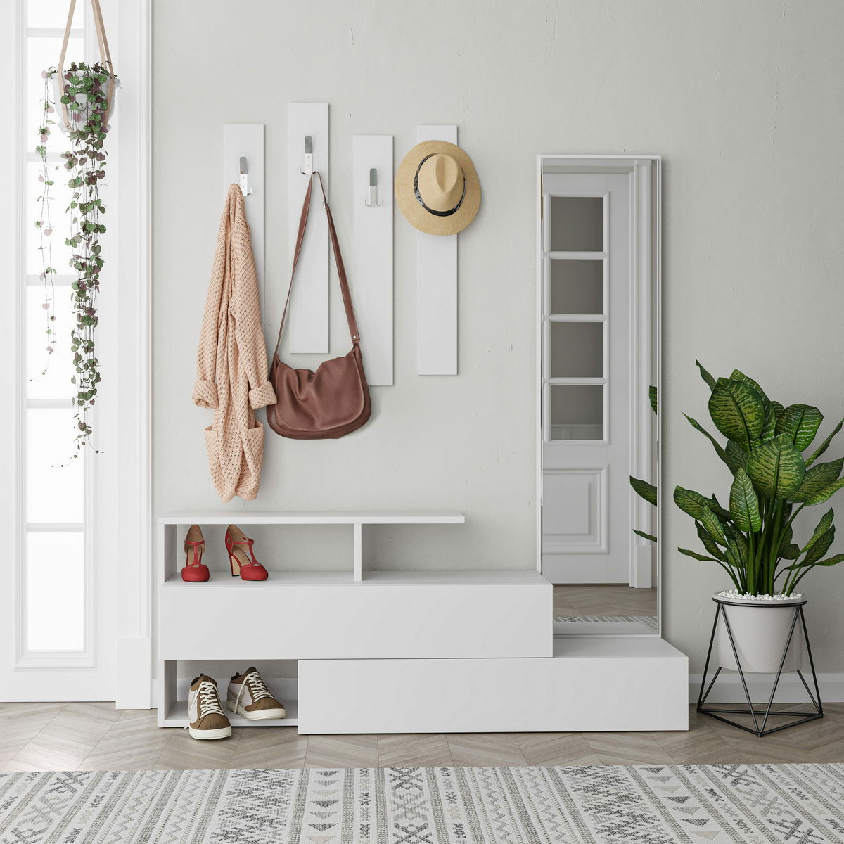 ZobrazitPředsíňová sestava - Rambo (Bílá) je praktický a stylový kus nábytku určený pro vaši předsíň. S výškou 54 cm, šířkou 137 cm a hloubkou 35 cm ideální kombinace velikosti a funkčnosti. Sestava je vyhotovena v elegantním bílé barvě, která přinese svěžest a šarm do vašeho interiéru. Tento nábytek vám poskytne dostatek úložného prostoru pro uspořádání vašich věcí. Zahrnuje praktickou poličku na boty, věšák na kabáty a knoflíky pro zavěšení klíčů. Rambo sestava je vyrobena z kvalitního materiálu, který je odolný vůči poškrábání a snadný na čištění. Je to ideální volba pro ty, kteří si cení stylu, praktičnosti a kvality.