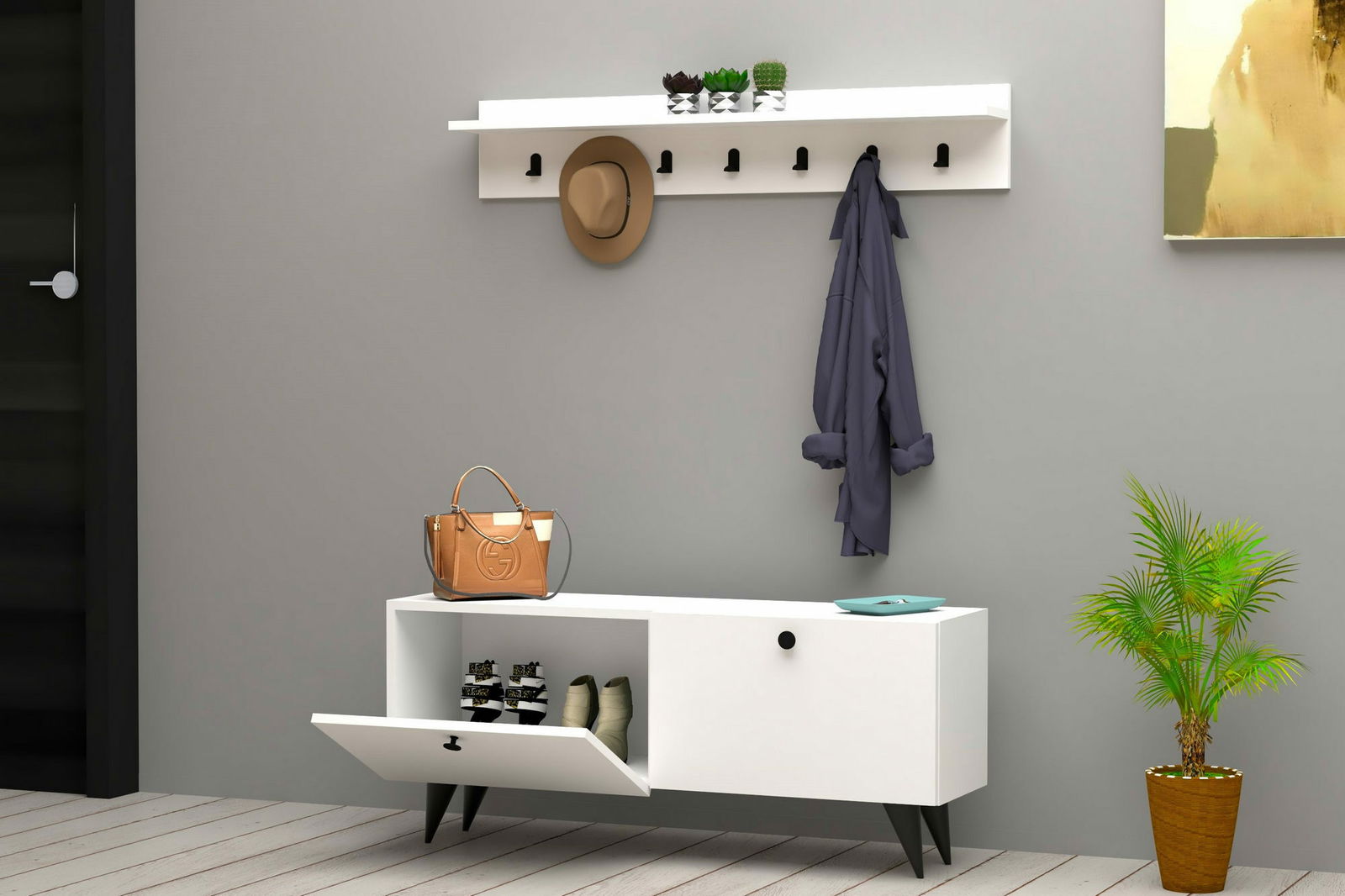 ZobrazitPředsíňová sestava - Rumal (bílá) je ideálním doplňkem pro váš domov. S její bílou barvou se bude snadno hodit do jakéhokoli interiéru. Předsíňová sestava je vyrobena z kvalitního materiálu a je odolná vůči poškrábání a opotřebení. Získejte si tuto všestrannou a praktickou síňovou sestavu - Rumal (bílá) a zajistěte si pohodlné a stylové řešení pro svůj domov.