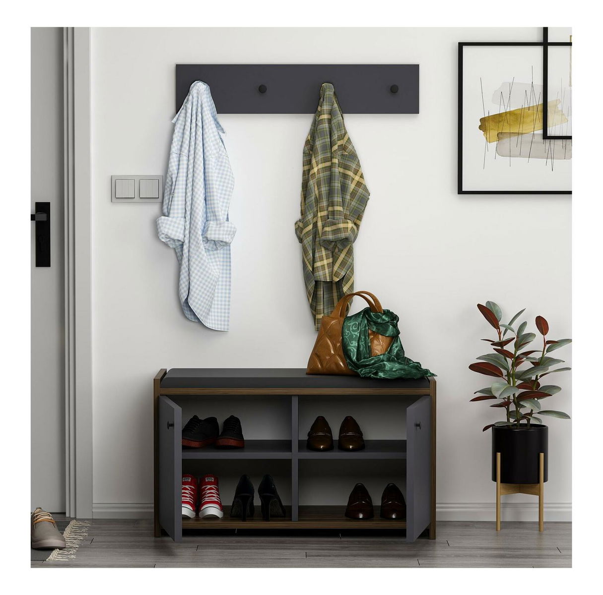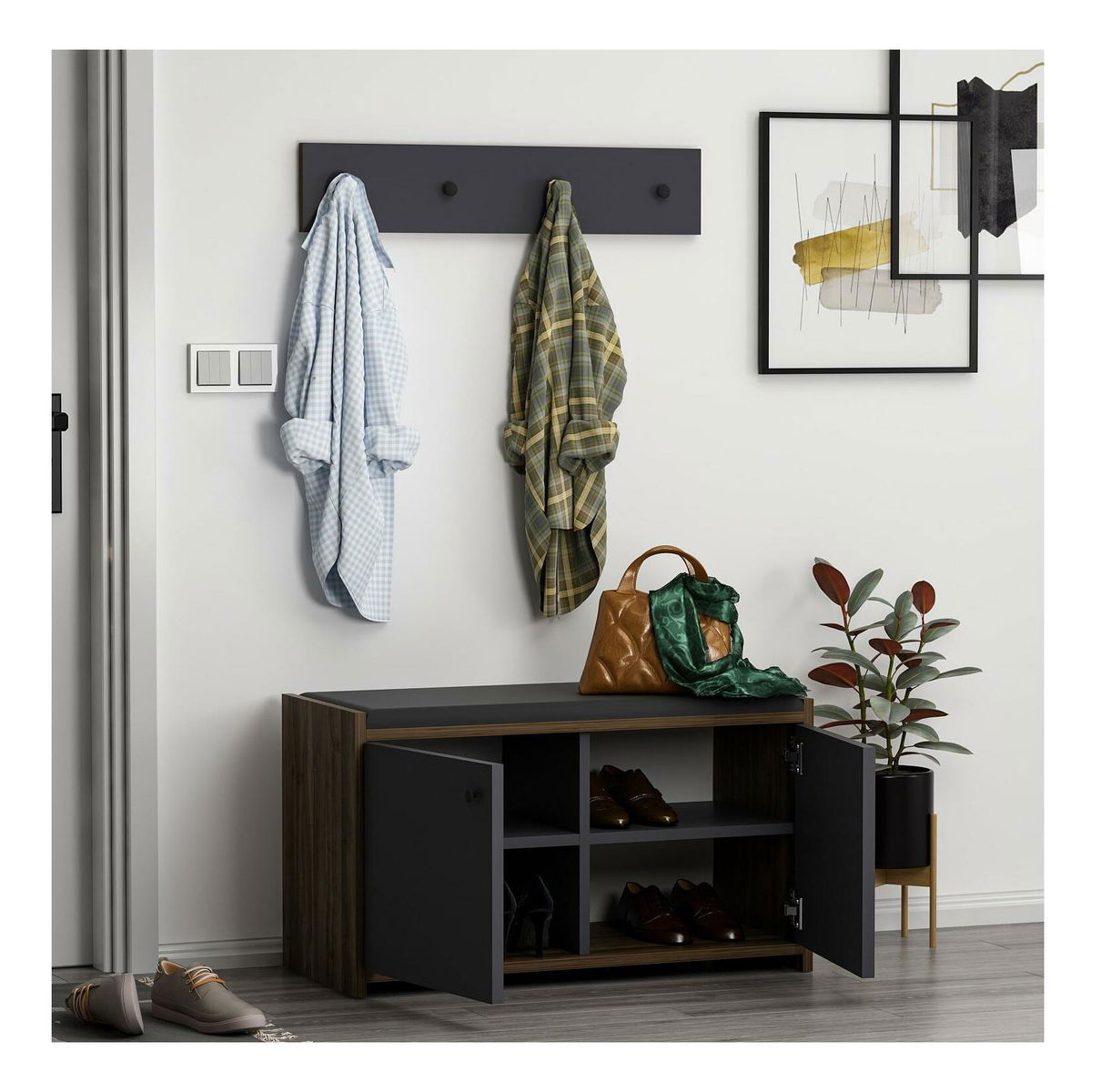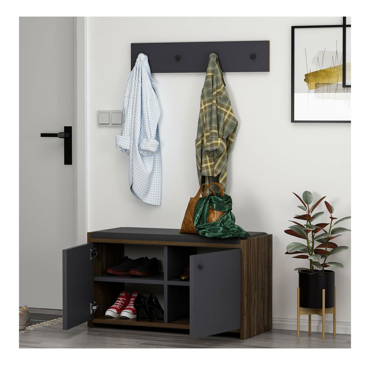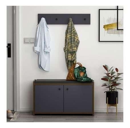 tloušťka: 18 mm, malba sušená v elektrostatické troubě olepování PVC skříňka: šířka: 80 cm, výška: 45 cm, hloubka: 35 cm, 2 zásuvky věšák: šířka: 72 cm, výška: 15 cm