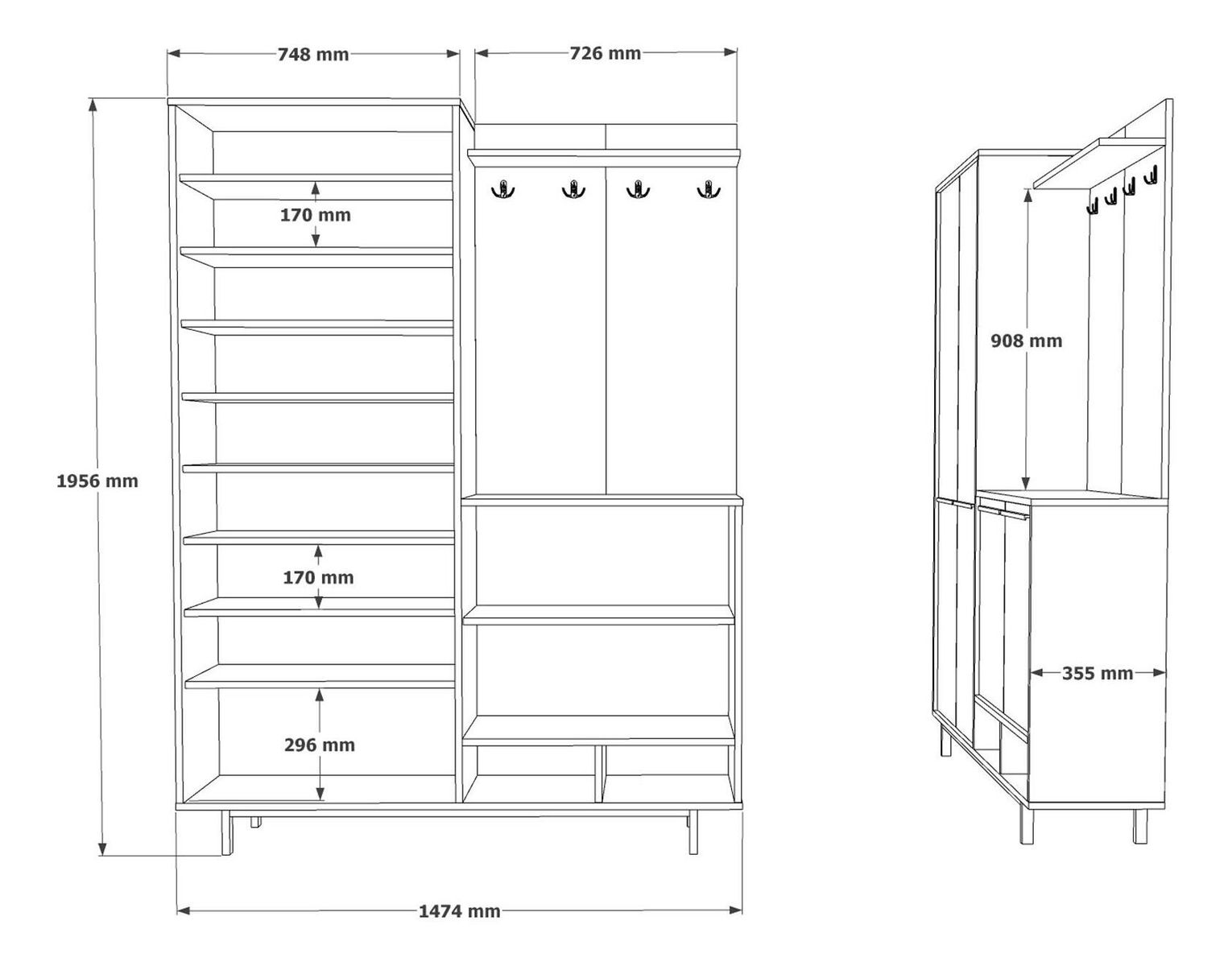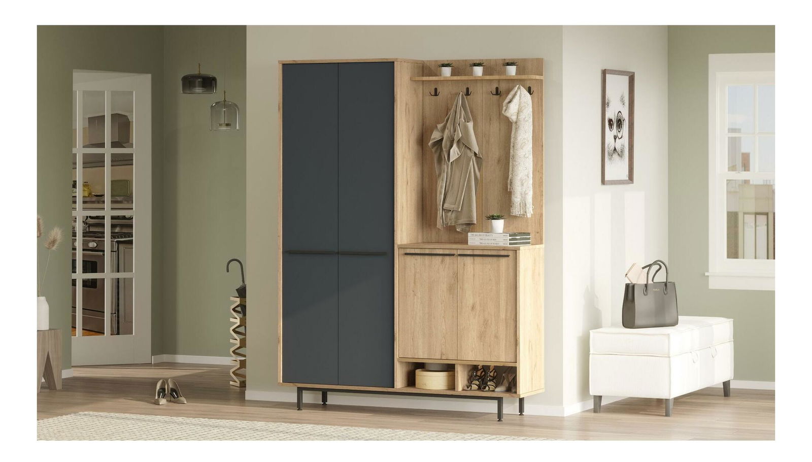 Předsíňová stěna Opuntia 1 (dub + antracit)