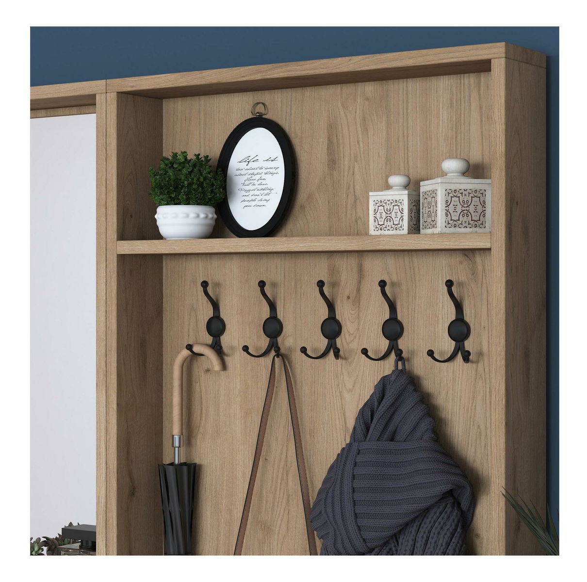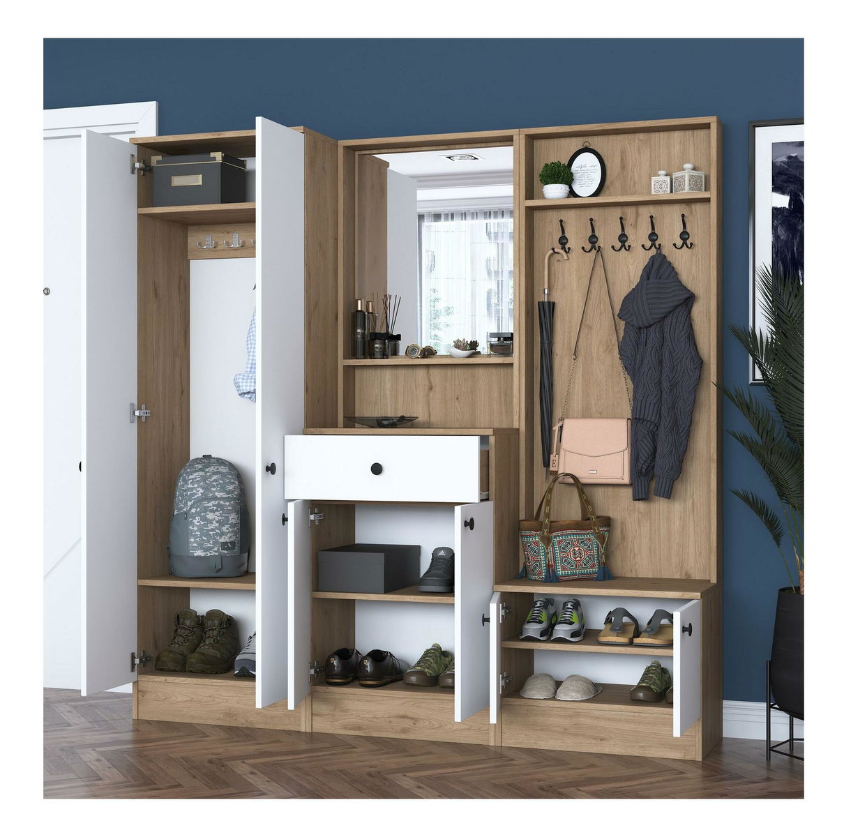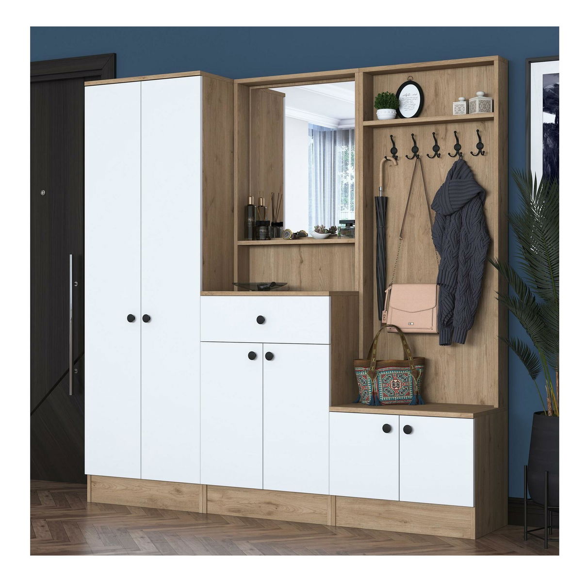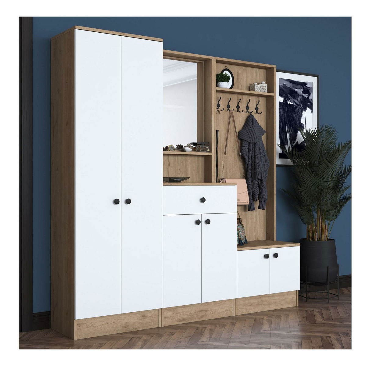 Předsíňová stěna Pixie 3 (bílá + ořech) (se zrcadlem)