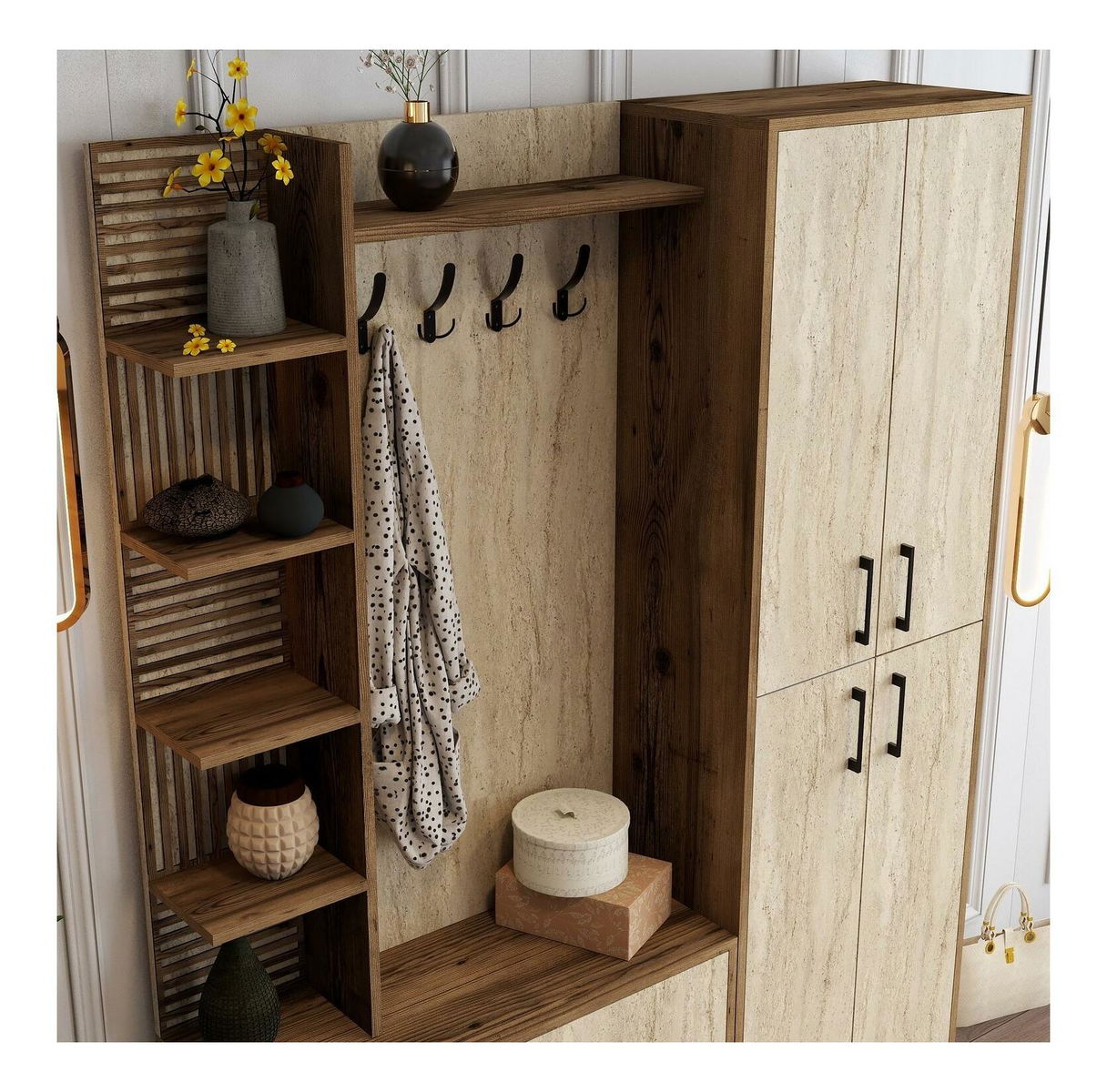 Předsíňová stěna Valery 3 (ořech + travertin)