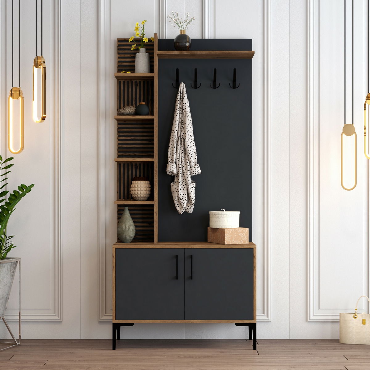Předsíňová stěna Valery 4 (Ořech + Antracit)