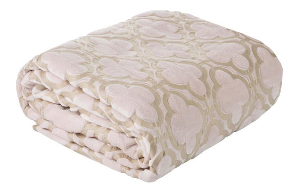Dodejte své ložnici nový svěží vzhled s novým přehozem přes postel. Přehoz vaši postel ochrání před zašpiněním a prachem. V chladných dnech vám poslouží také jako náhrada deky. Kromě toho se jedná o vkusný bytový textil, díky kterému bude vaše ložnice ještě útulnější. Oboustranný přehoz CELEBRE je z jedné strany světlý růžový a z druhé strany je na ní vystoupen vzor. Povrch přehozu je plyšový s vtisknutými geometrickými vzory.