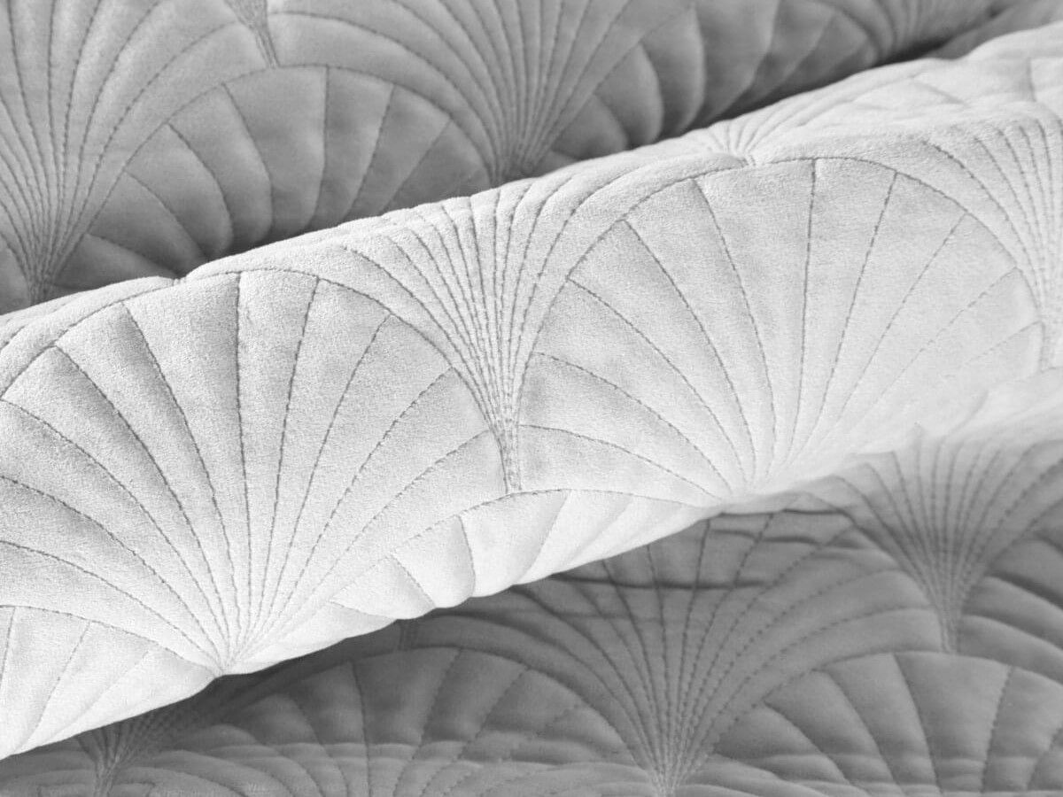Dodejte své ložnici nový svěží vzhled s novým přehozem přes postel. Přehoz vaši postel ochrání před zašpiněním a prachem. V chladných dnech vám poslouží i jako náhrada deky. Kromě toho se jedná o vkusný bytový textil, díky kterému bude vaše ložnice ještě útulnější. Přehoz RIA v sametové bílé barvě zaručí pocit čistoty. Povrch přehozu je sametový se vzorem art deco vějířů.