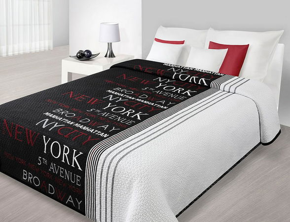 Přehoz na postel 240x220cm New york (černá + bíla + červená)