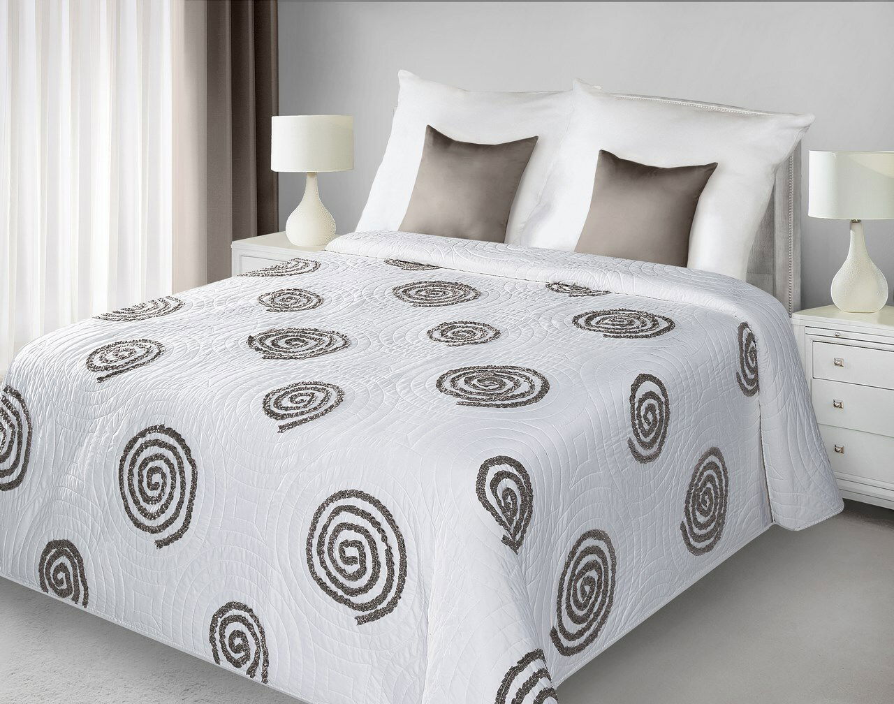 Přehoz na postel 240x220cm Opi (bílá + hnědá)
