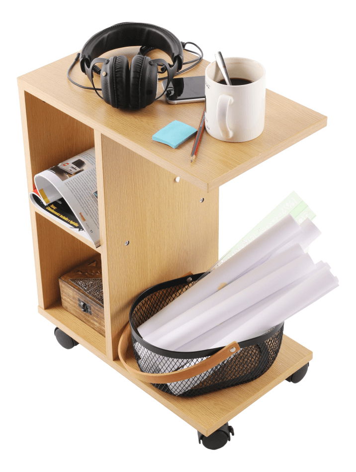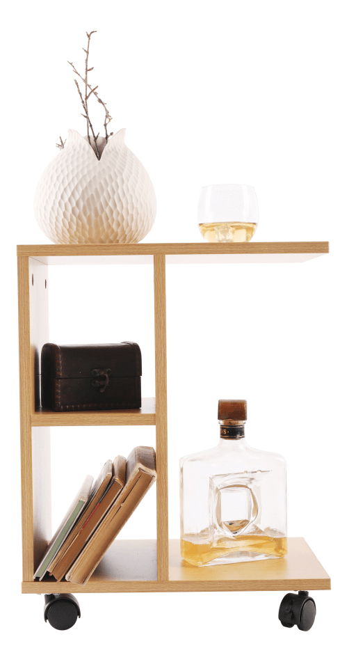 Hezký příruční stolek s všestranným využitím ve Vaší domácnosti, který výborně poslouží na odložení knih, jako místo pro lampu, květiny, či další dekorace. Stolek má kolečka a můžete ho velmi jednoduše přemisťovat. A jako designový doplněk zkrášlí obývací pokoj, jídelnu, či pracovnu.