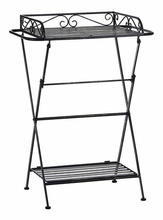 Tento odkládací stolek je skvělým příkladem dokonalé rovnováhy mezi vintage designem a glamour stylem. Je vyroben z odolného kovu v černém provedení a díky své lehké konstrukci se s ním snadno manipuluje.