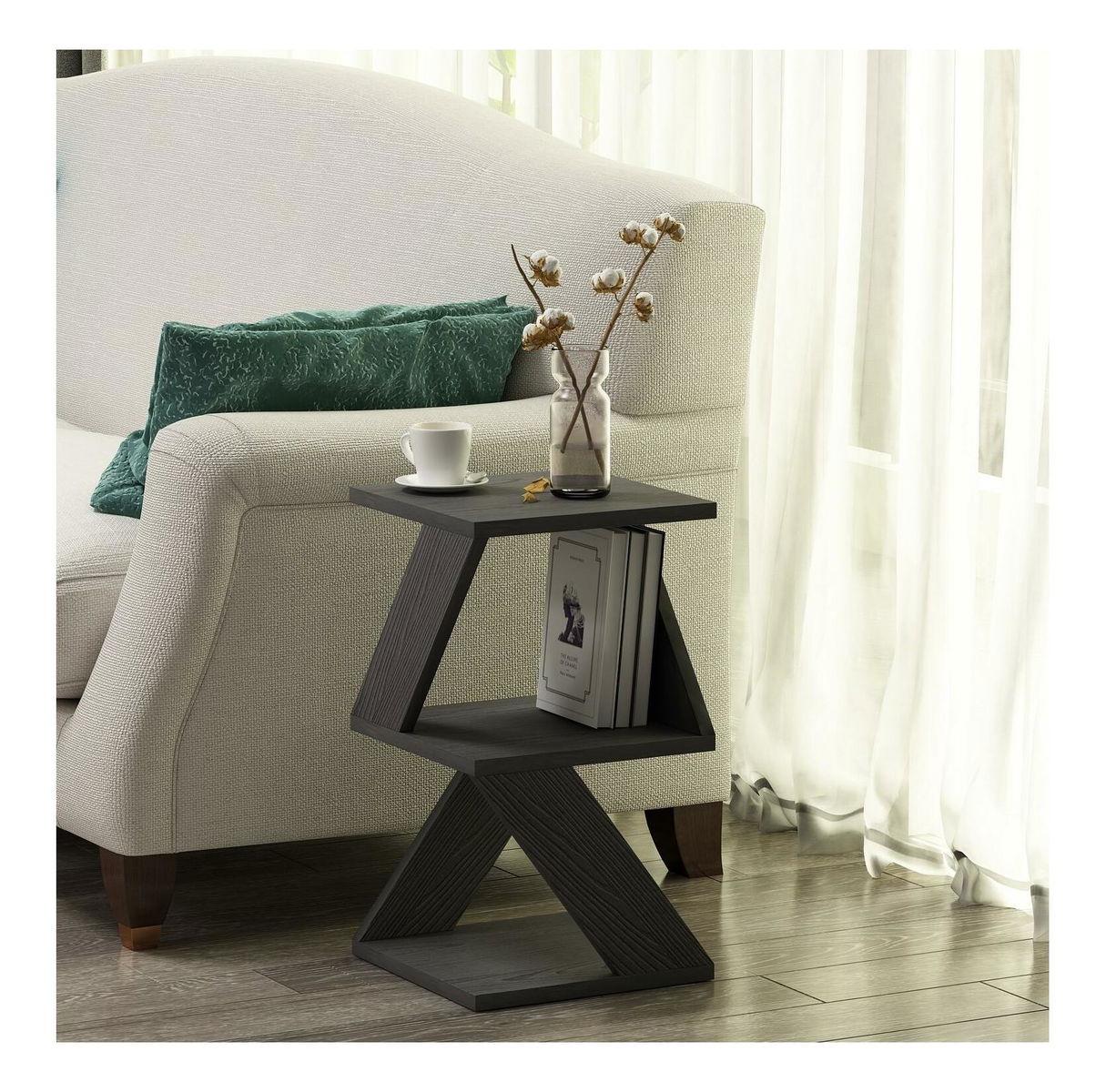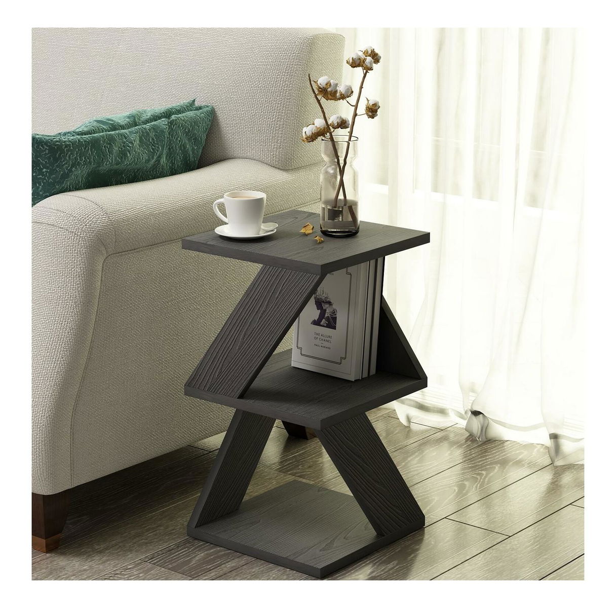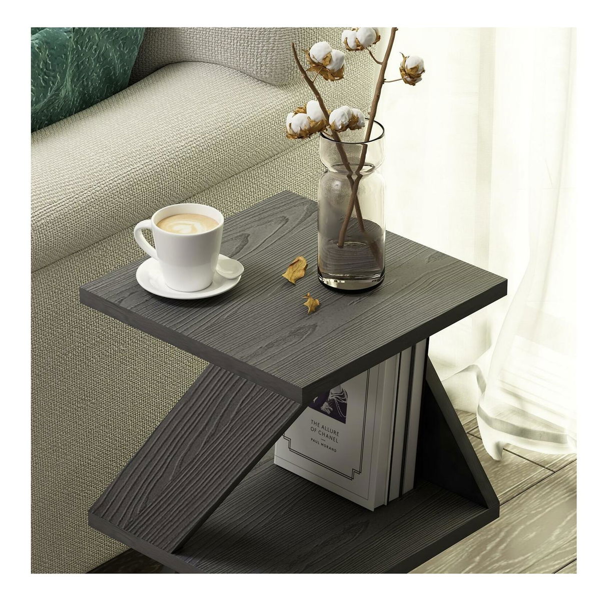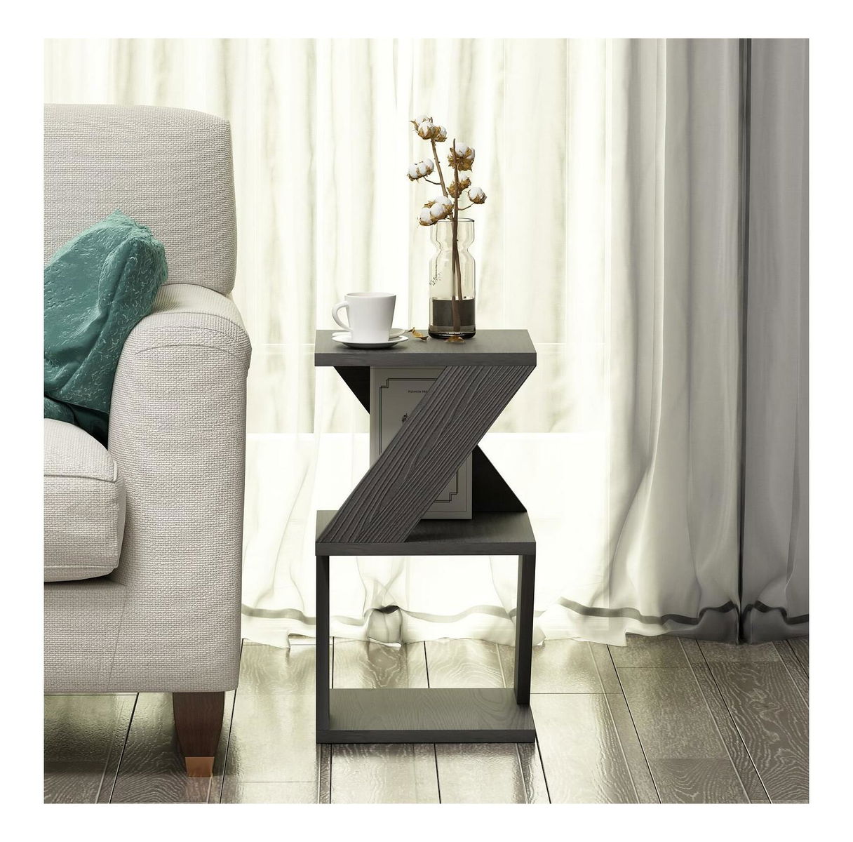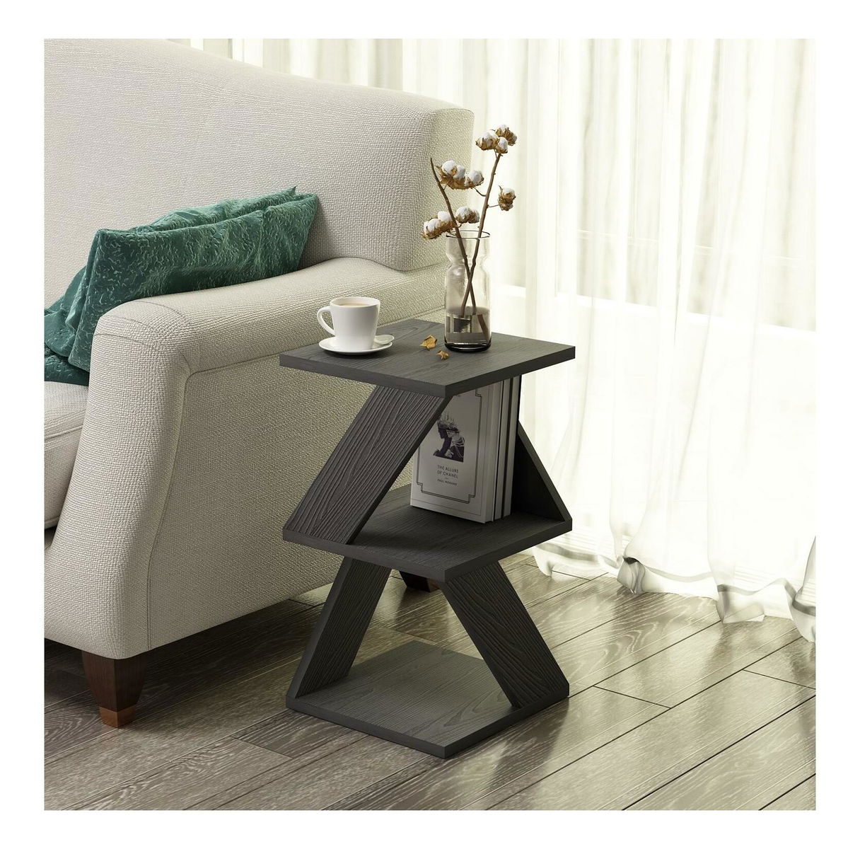 Příruční stolek Albena (černá + dřevo)