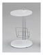 Moderní příruční stolek najde uplatnění ať už v domácnosti, tak i restauracích, hotelích nebo firemních prostorách. Dvě kulaté odkládací plochy jsou vyrobeny z kvalitní MDF, která je nabarvená lesklou bílou barvou. Ty jsou spojeny kovovou konstrukcí chromové barvy, na které se nachází praktický držák na časopisy.